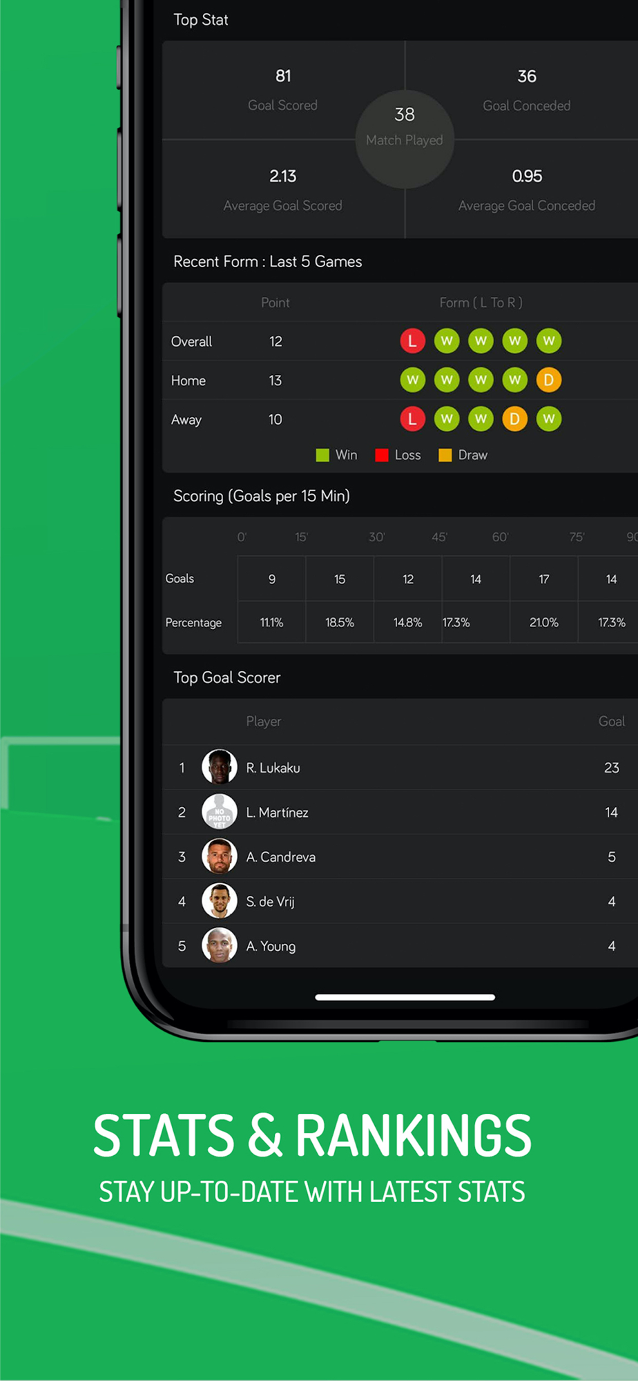 Including Standings, Head to Head, Top Scorers, Top Assists, and Cards.