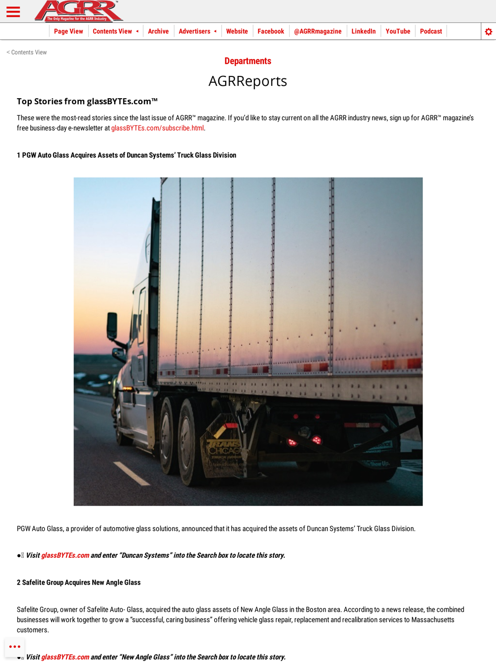 Auto Glass Repair and Replacement (AGRR™) magazine provides in-depth features, exclusive interviews, and insightful commentary about the automotive glass industry. If you are an owner, manager, employee or are allied to the auto glass industry, AGRR™ magazine is the publication designed to meet your needs. Find all the information our expert editorial staff gathers in one convenient location here within the AGRR™ App.