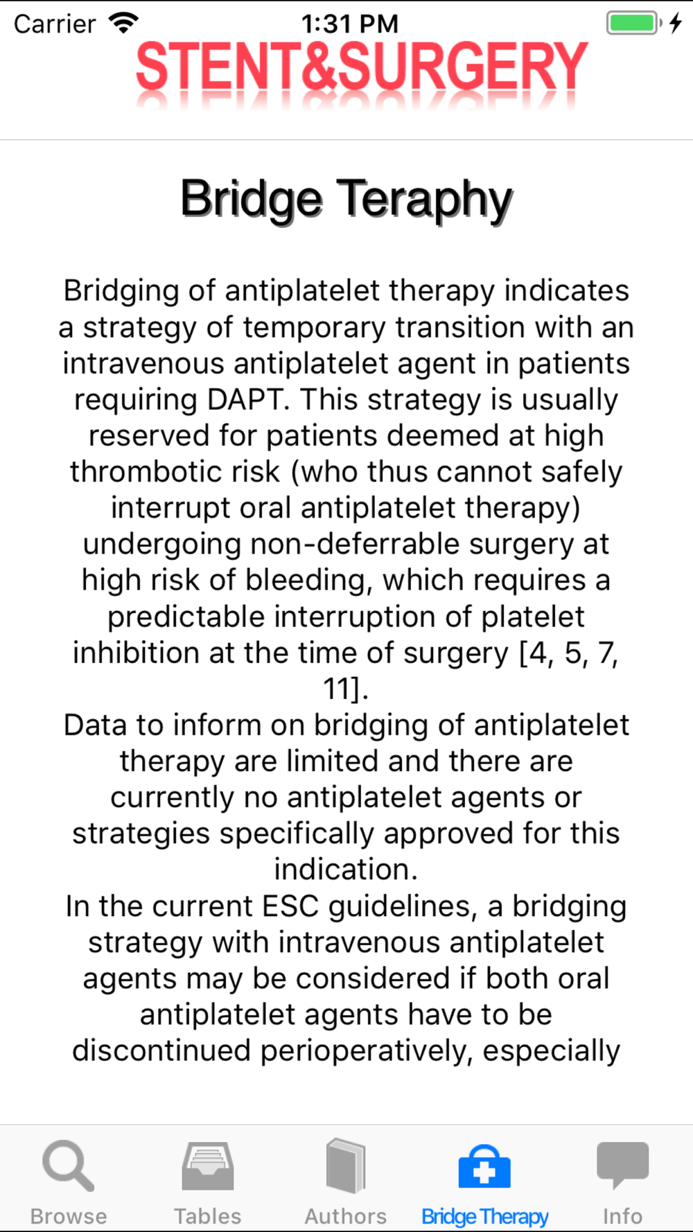 The management of antiplatelet therapy in patients with coronary stents undergoing surgery is a growing clinical problem and often represents a matter of debate between cardiologists and surgeons. It has been estimated that about 4-8% of patients undergoing coronary stenting need to undergo surgery within the next year.