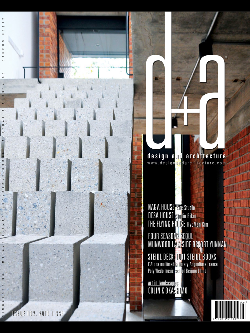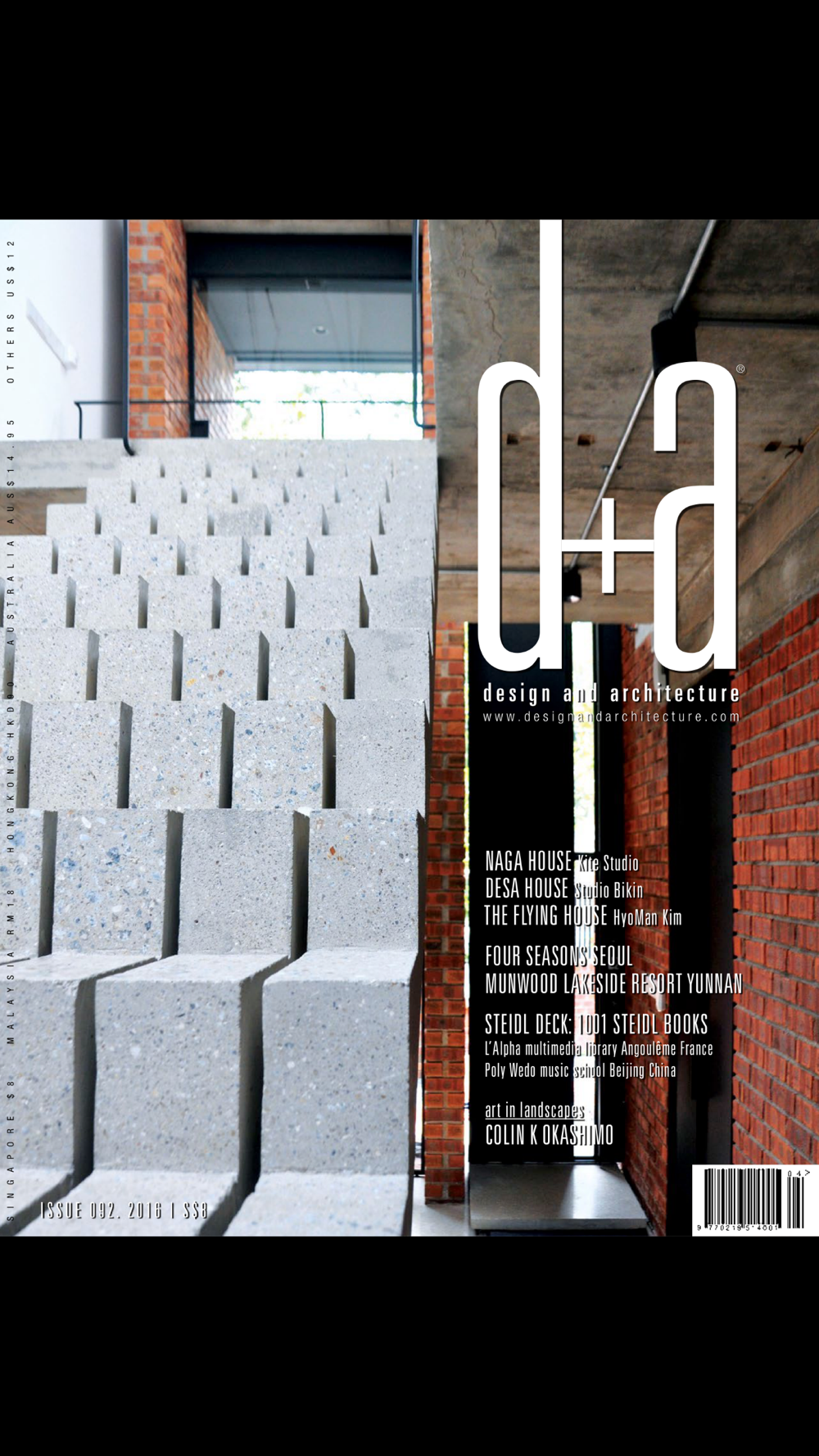 d+a is a Singapore-based bi-monthly magazine featuring works of exceptional architecture and interior design by outstanding talents worldwide. In each issue are core sections on contemporary houses, residential interiors with a focus on spatial design, and commercial buildings and spaces such as hotels, boutiques, restaurants and offices. You can also find compelling reads on the urban environment, art, culture and heritage, supplemented by design news and highlights, interviews and useful information on new products.