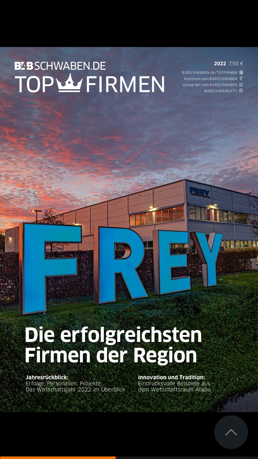 Das Nachrichten-Portal www.B4BSCHWABEN.de informiert täglich online über das Wirtschaftsleben der Region Bayerisch-Schwaben. Im B4B SCHWABEN Kiosk finden Sie alle relevanten Wirtschafts- und Unternehmenspublikationen aus Augsburg, Schwaben und dem Allgäu kostenlos zum Blättern.