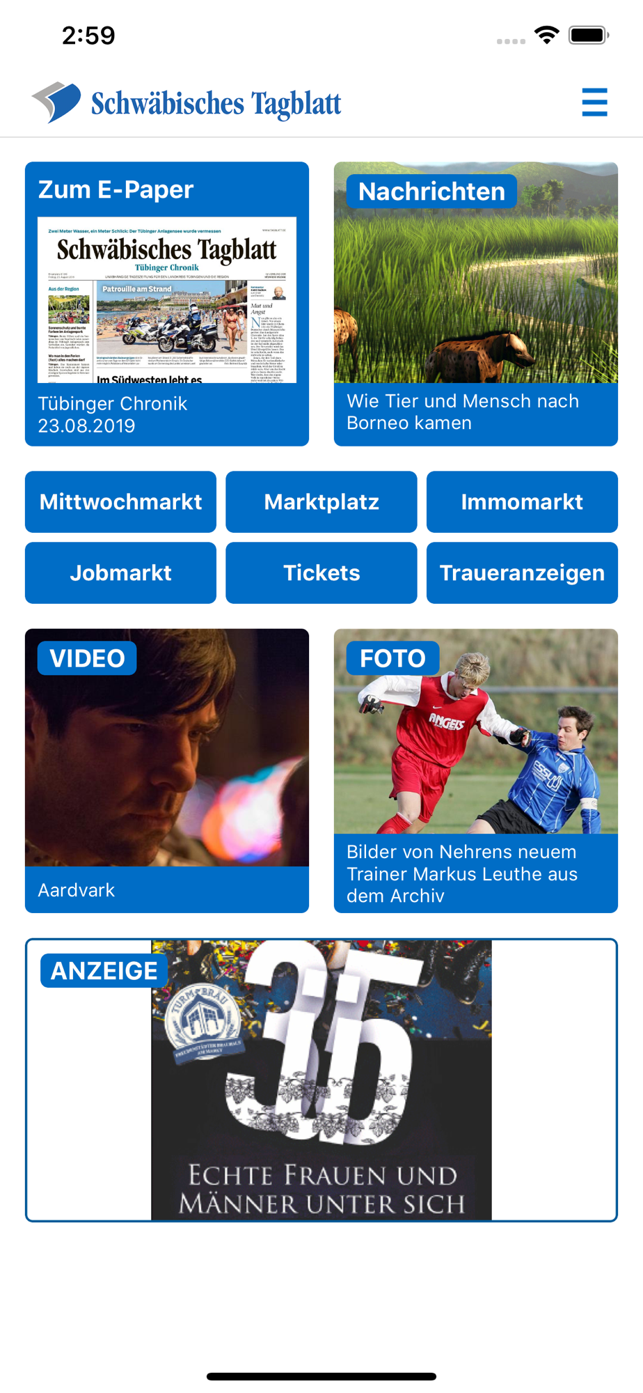 Mit der App des SCHWÄBISCHEN TAGBLATTs erhalten Sie komfortablen Zugriff auf die E-Paper-Ausgaben des Verlags. Sie können das E-Paper auf Ihr Gerät laden und dann offline nutzen. Die Artikel können Sie sich von der App auch vorlesen lassen.
