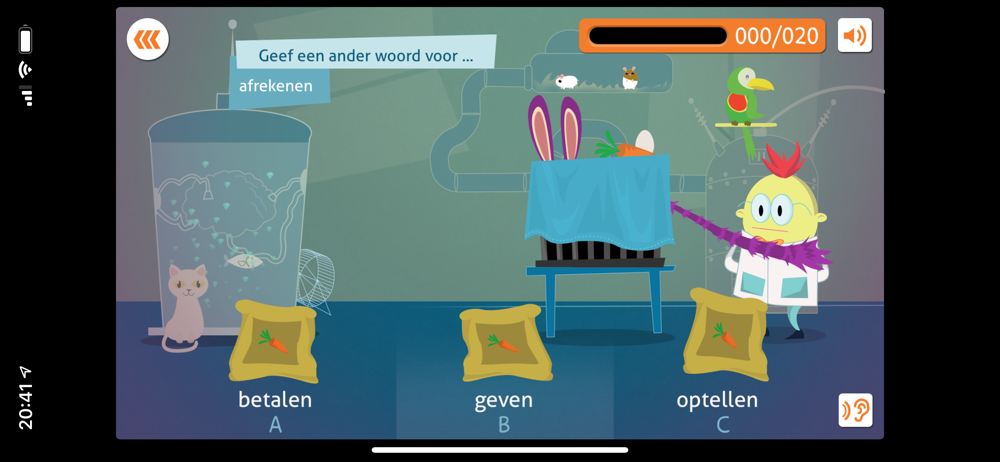 * Speel het hoofdspel – Hierin komen alle taaloefeningen oplopend in moeilijkheidsgraad aan bod.