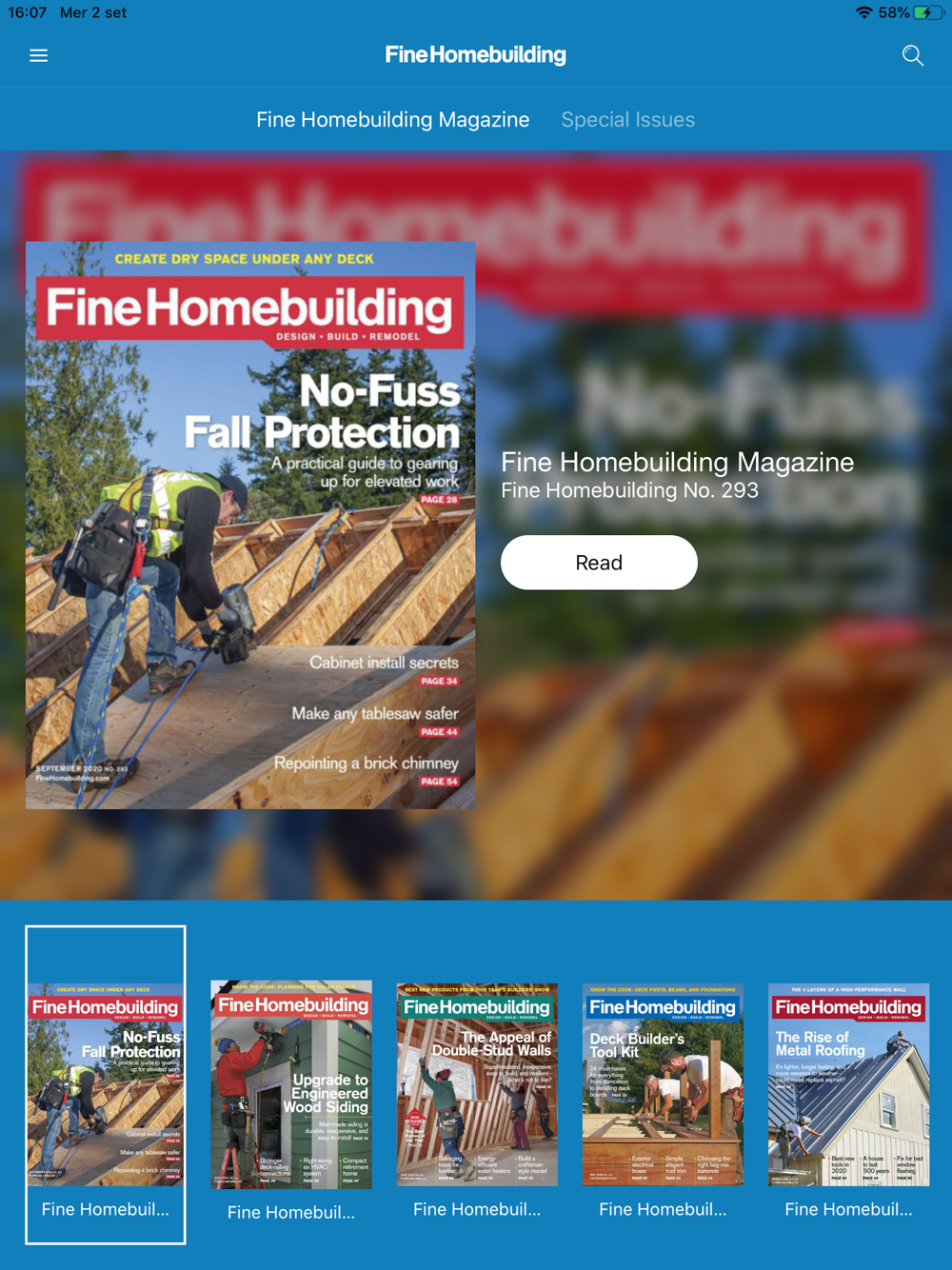 SUBSCRIPTION PLANS ARE AVAILABLE. Download the Fine Homebuilding app, then subscribe or buy issues individually. If you are currently a print subscriber or paid online member, you can get access to digital editions FREE -- absolutely no extra cost. Simply sign in with your customer number or member email in the Settings tab.