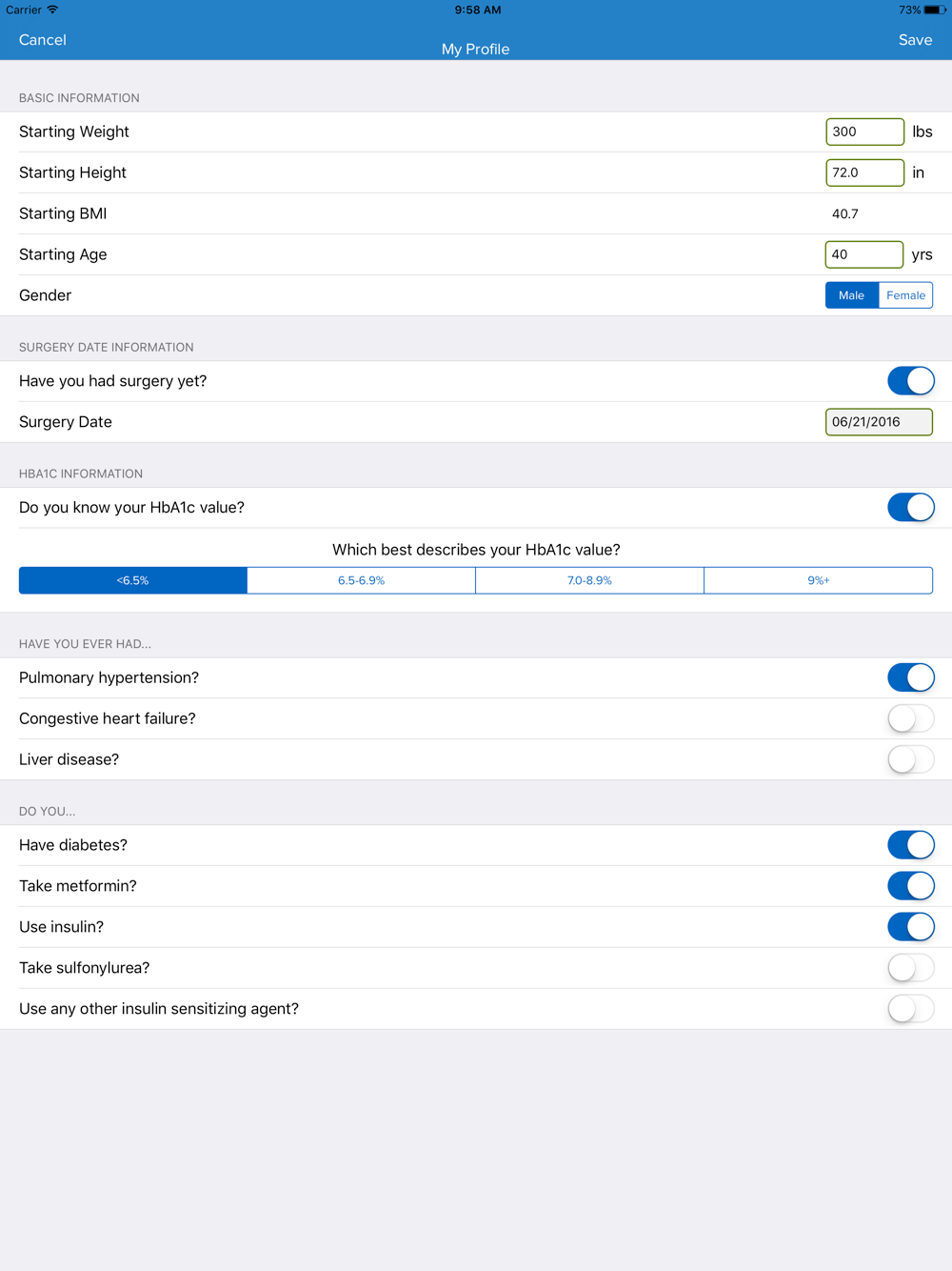Get~2~Goal provides personalized weight goals using years of trends and data that have been collected by Geisinger, it allows for tracking weight over time, it calculates probability of surviving the procedure and probability of resolving diabetes (for diabetes patients) based on information entered in your personal profile