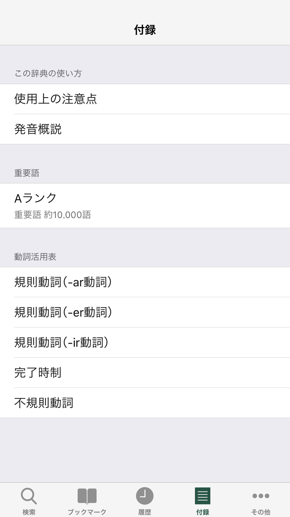 本製品は、弊社の外国語辞典同様の洗練された使いやすいユーザーインターフェースで、「なぞってジャンプ®」や日本語での用例検索、動詞活用表など便利な機能を搭載しています。またブックマークや履歴機能など辞典アプリの基本的な機能も充実しています。