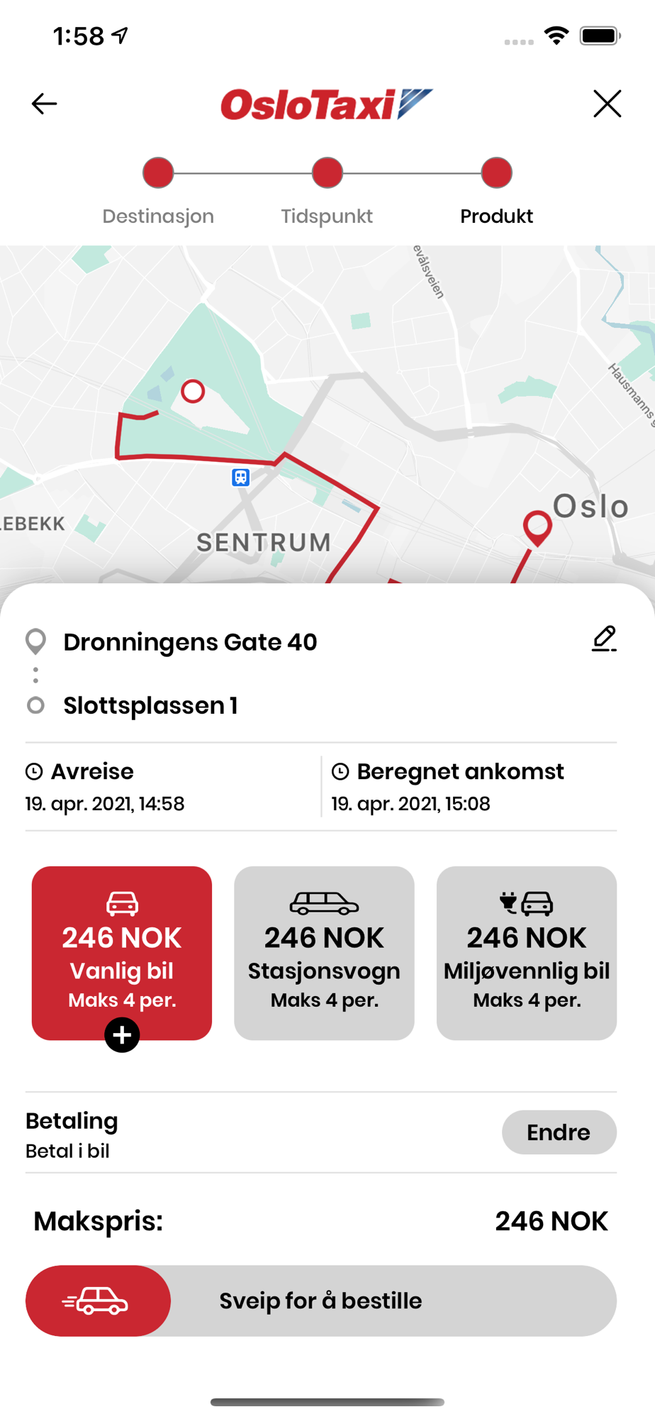 • Åpne appen og bestill direkte fra din posisjon med «Taxi nå»