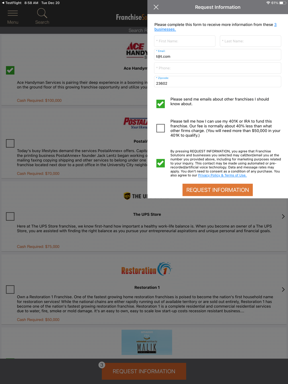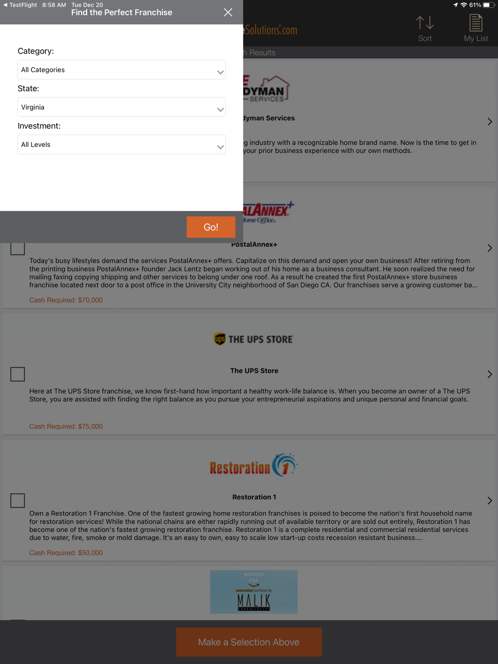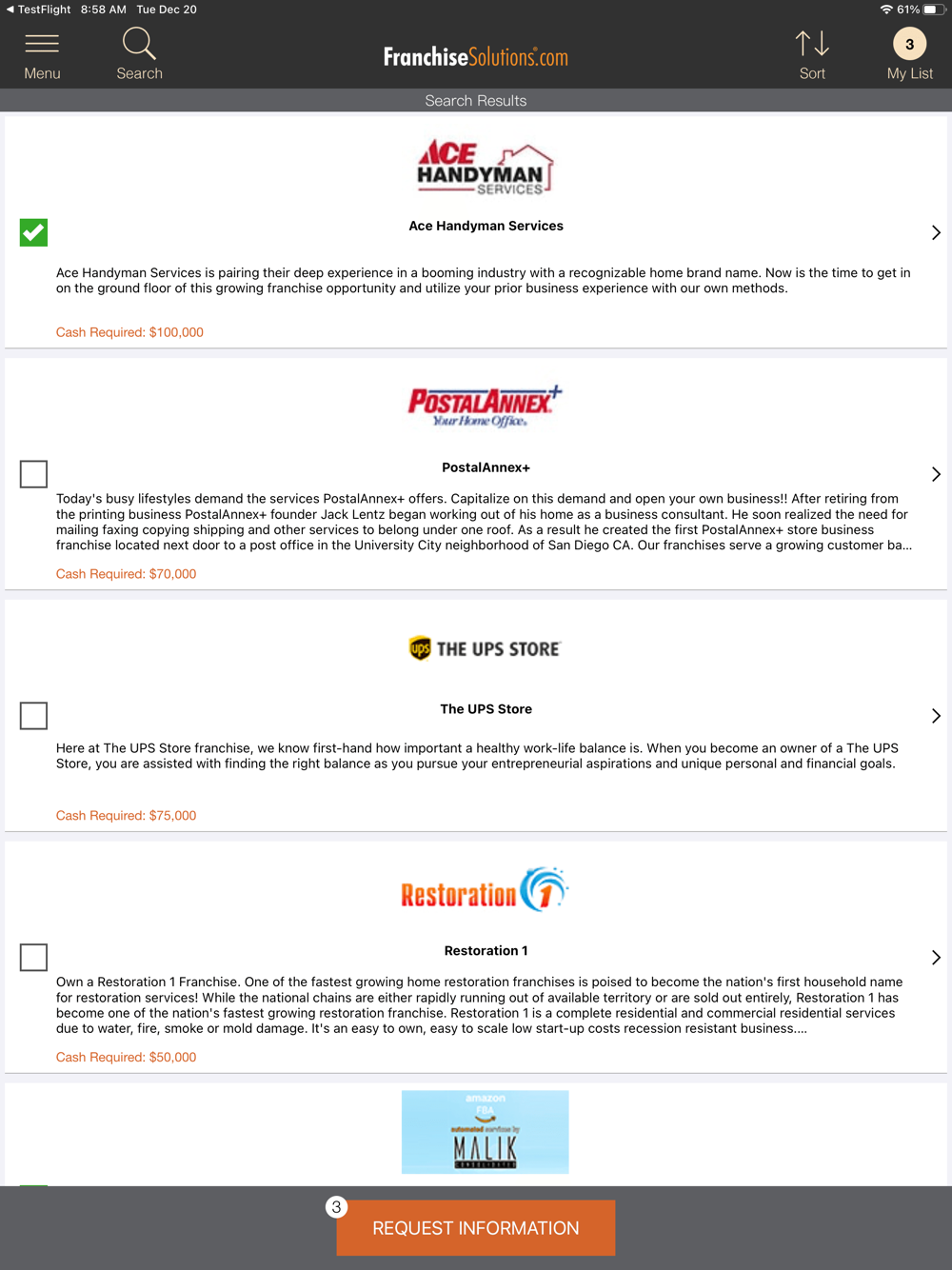 • Personalize your search with location, investment and industry preferences.
