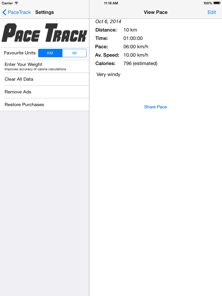 Keep track of your running and jogging records in the easy to use PaceTrack app: