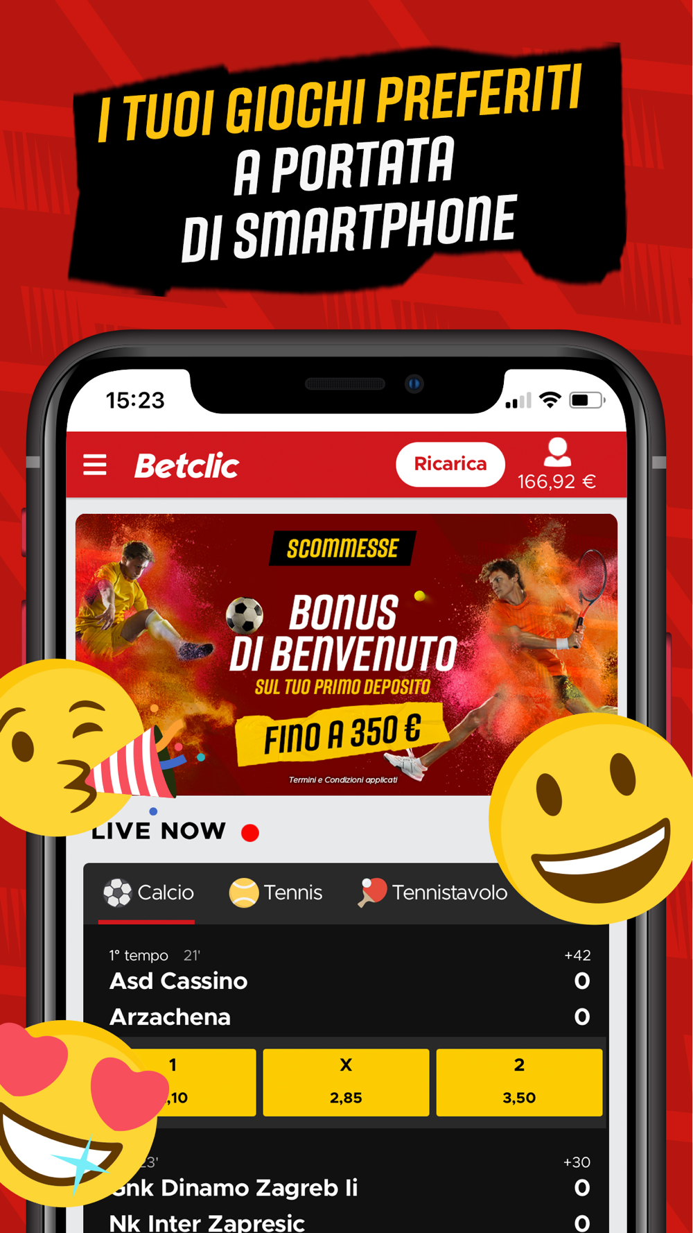 Non solo calcio, non solo sport minori: potrai adesso tenere in tasca le roulette, le slot machine ed il brivido dei giochi da casinò, per vivere avventure fantastiche e trascorrere momenti divertenti in compagnia dei tuoi personaggi preferiti.