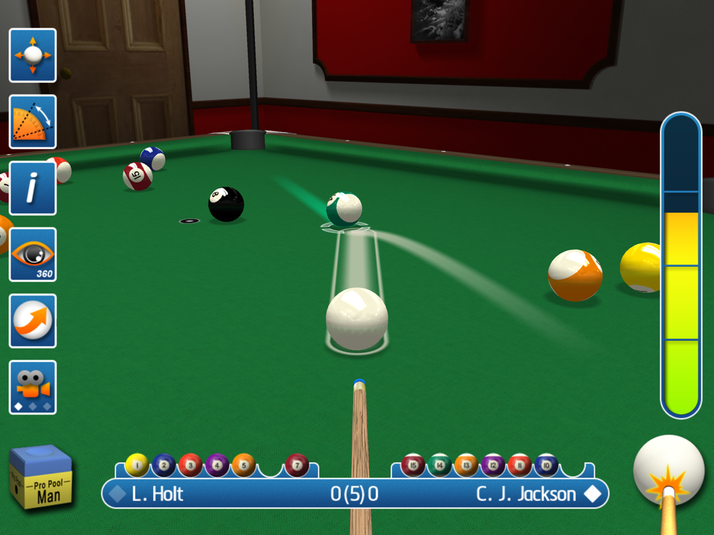 The simple click and play interface allows you to pick up and play the game quickly, or alternatively for the more serious players the game includes cue ball control allowing you to perform more advanced shots including back spin, top spin, left spin (Left english), right spin (Right english) and ball swerve.