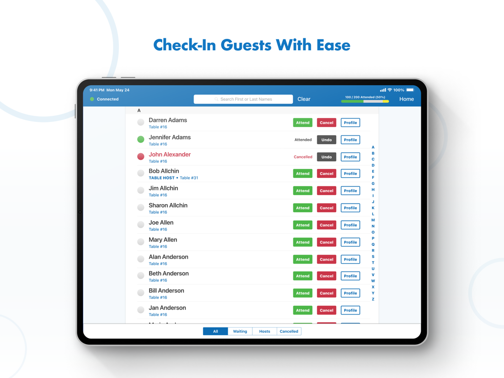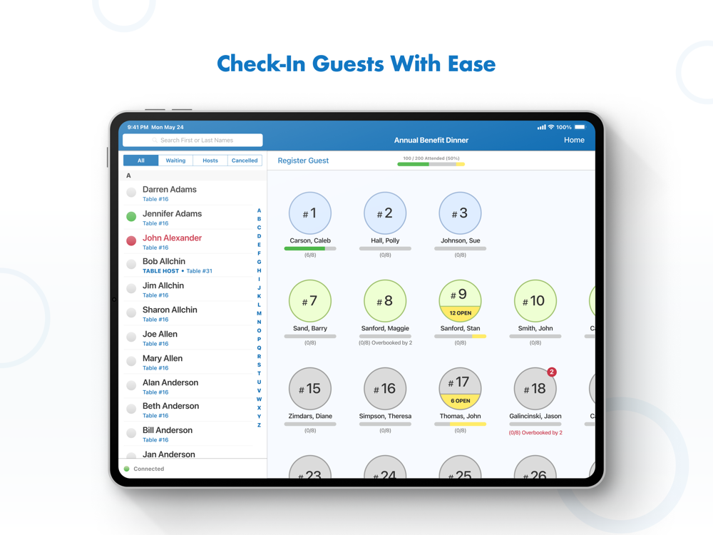 Record attendance, manage seating and capture guest information for table hosted events.