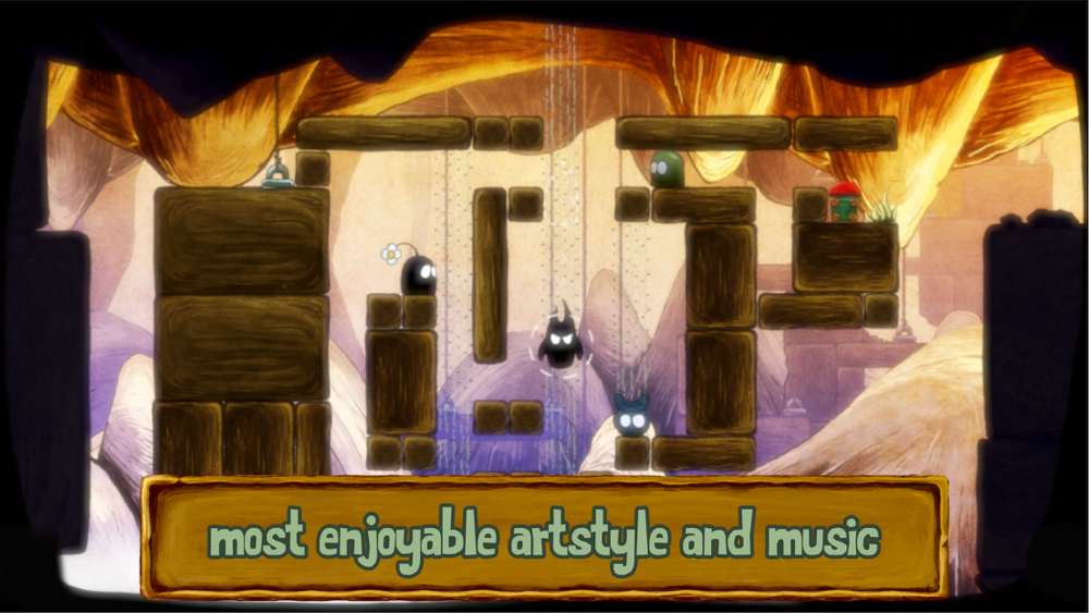 Slip into the role of Love and Hate in this fun and challenging puzzle game. Help the cute main characters to get back to their beloved hill. Master all of the 70 levels, encounter diverse other ones and find out how they respond to Love and Hate.