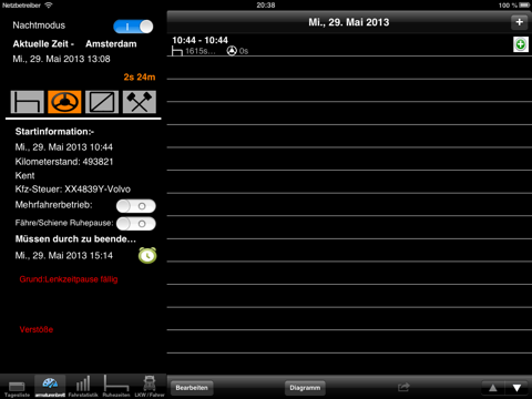 Sie informiert Sie auch, wann Sie das nächste Mal fahren können und wie lange, und wann die nächste Pause fällig ist. Darüber hinaus erhalten Sie andere wertvolle Informationen, mit denen Sie Ihre Fahrten planen können.