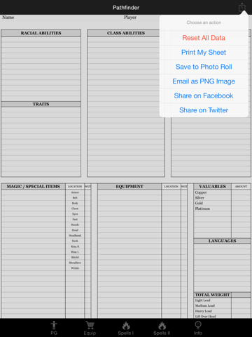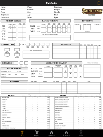 - DICE TABLE: Tap with 3 fingers on each sheet page to access the dice table area!