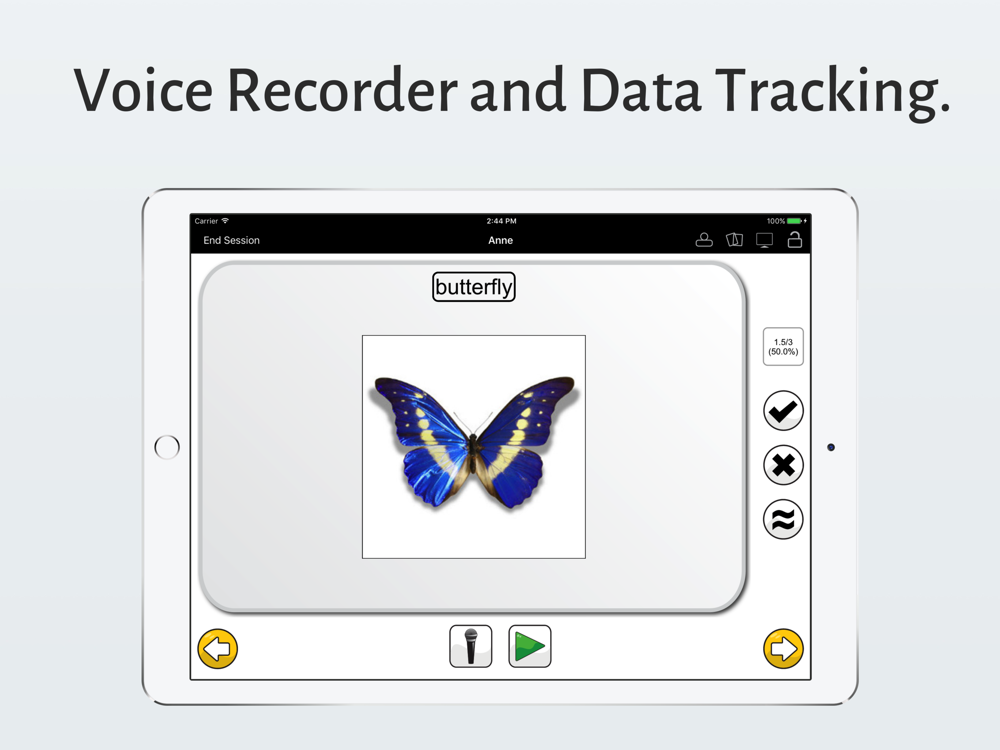 Improve speech and language skills with Speech Cards, a flashcards app for people of all ages. Each card shows customizable text and a picture. Tap on the text or picture to hear an audio recording. Use the microphone to practice speaking and then listen to get immediate feedback. Track the progress of your students by using the integrated scoring and reporting system. Create and share cards with your friends and colleagues.
