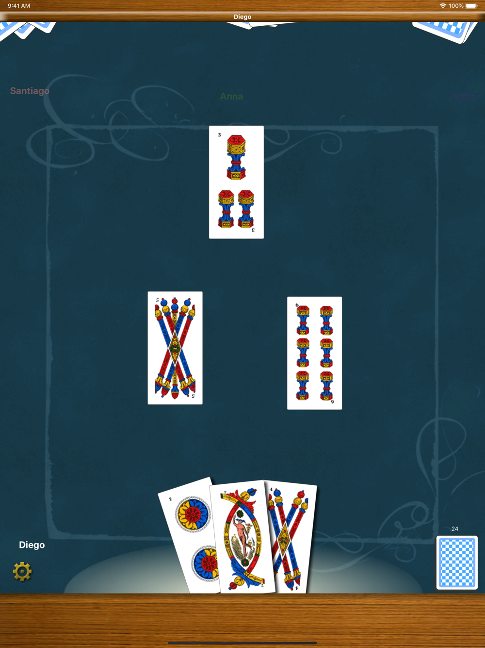 The game is usually played with a deck of traditional Spanish playing cards, but this app also includes italian and international decks.