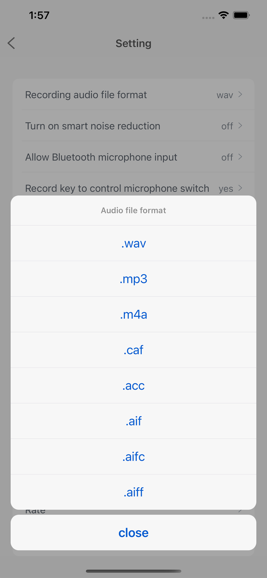 6, a variety of recording file format (wav, m4a, caf, aiff);
