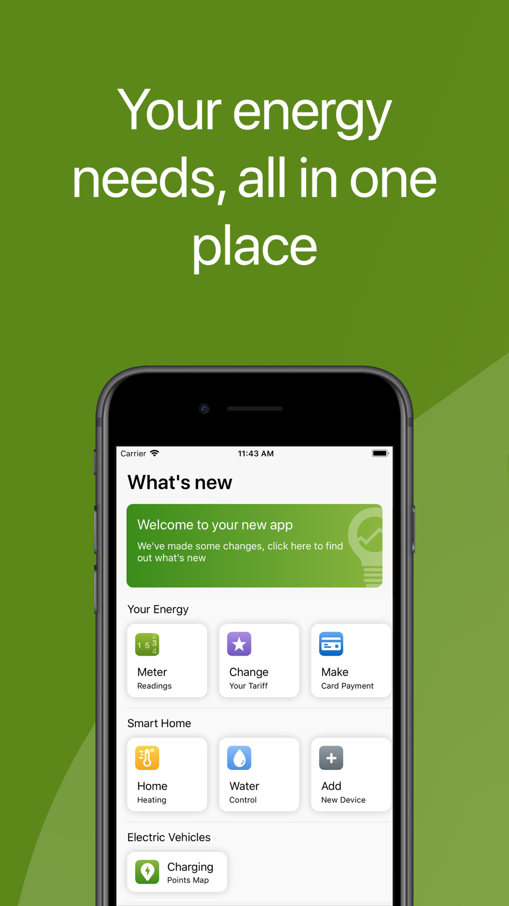 As well as all of your favourite features such as changing your tariff, managing your monthly direct debit payments, entering your gas and electricity meter readings and keeping track of your gas and electricity usage with your smartphone on the go, we've also added a bunch of exciting new features for you to try!