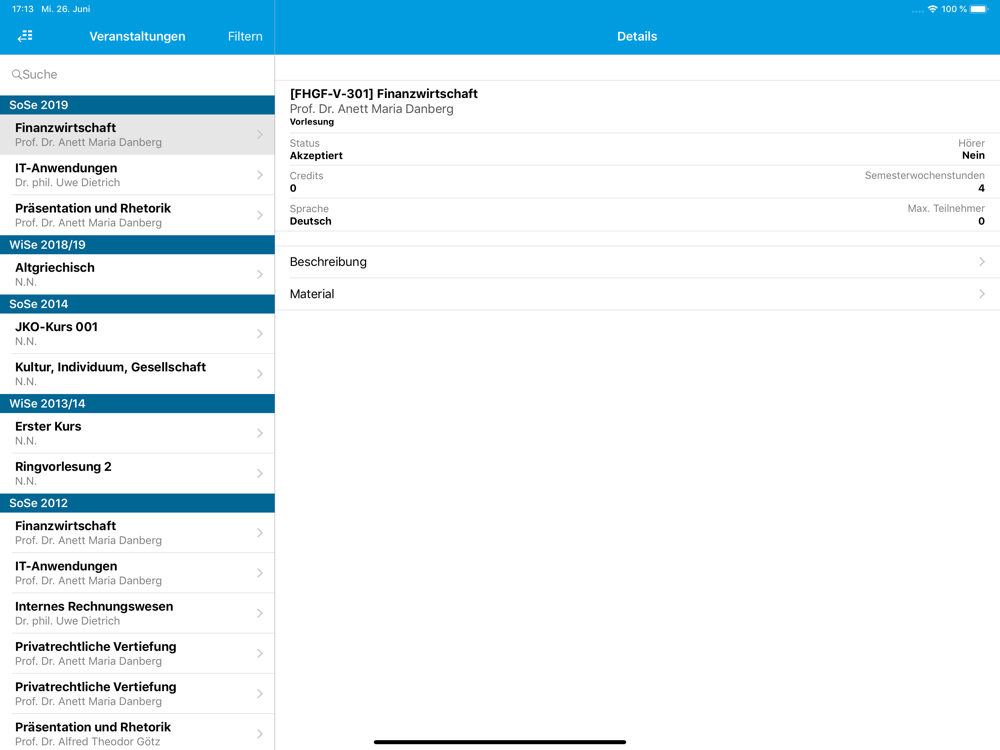Die App ermöglicht Studierenden den direkten, personalisierten Zugriff auf Informationen zu ihrem Studium und Lehrenden zu ihren Daten im Bereich der Lehre.