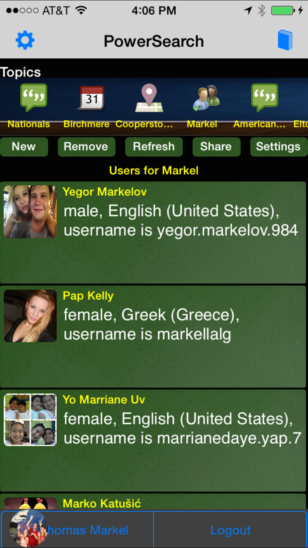 On start-up, all saved Topics are run automatically. Use app settings, upper left-hand corner to clear saved Topics on start-up, if desired. Selecting a Topic will show you that Topics details. To remove an existing Topic, click the Remove Topic or dragging the Topic thumbnail up. To add a new Topic, click the Add Topic button. To refresh results, click the Refresh Topic button. Use the Topic Settings button to change your Topic's settings. Selecting the check mark again to accept will rerun the Topic.