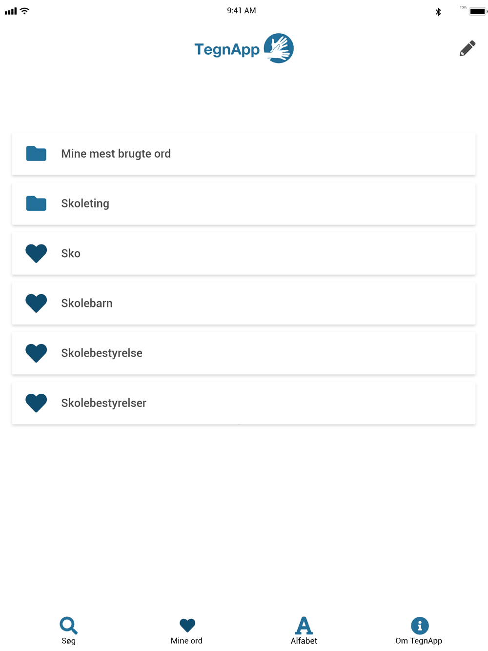 TegnApp er en ordbog, som giver dig mulighed for at søge og finde de tegn, du står og mangler. Du får en kort video, hvor en professionel tegnsprogstolk viser dig, hvordan tegnet udføres.