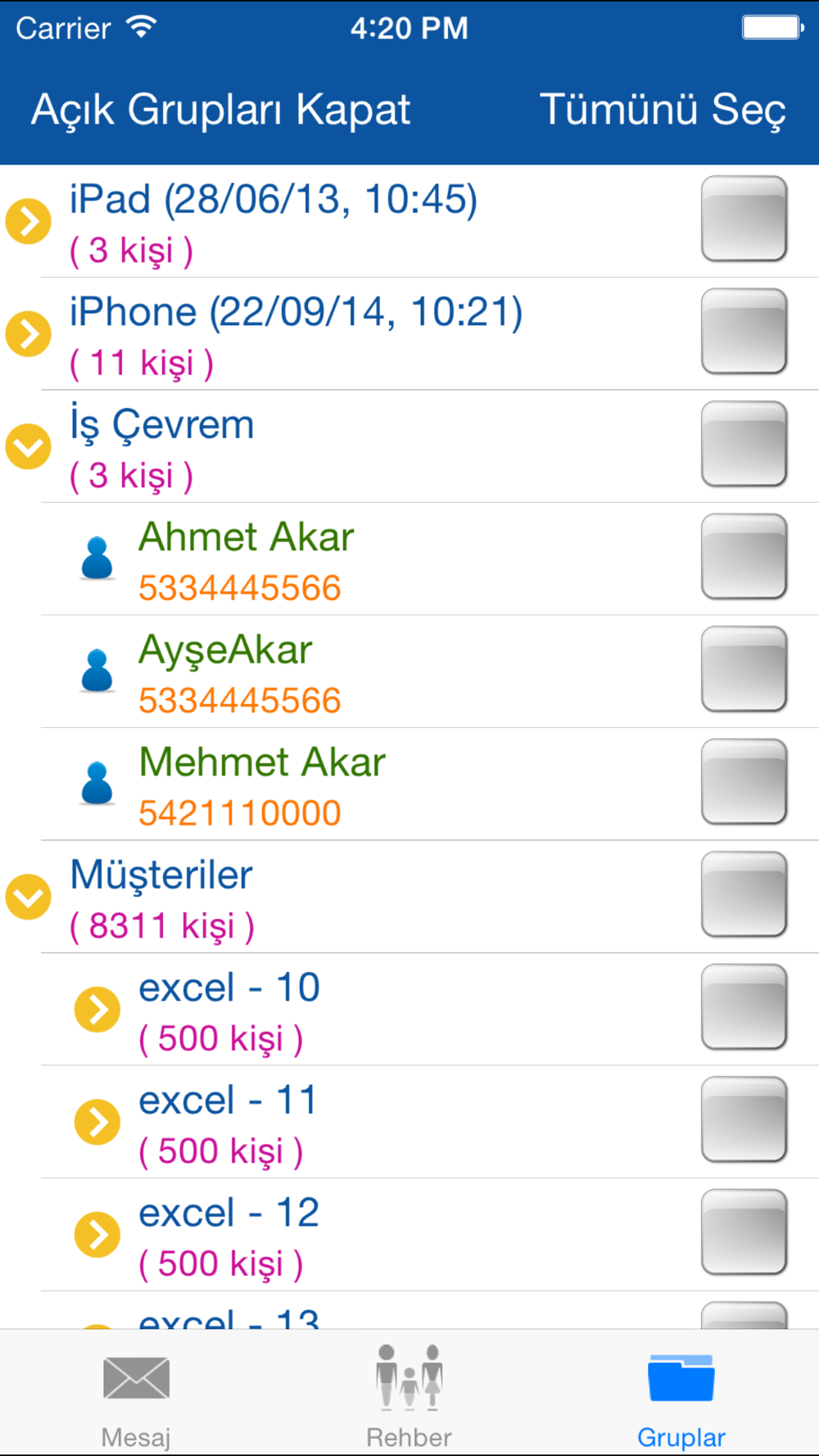 firma ünvanınız veya isminizle toplu sms gönderebilir ve rehberinizdeki kişileri mesaj gönderme programına aktarabilirsiniz.