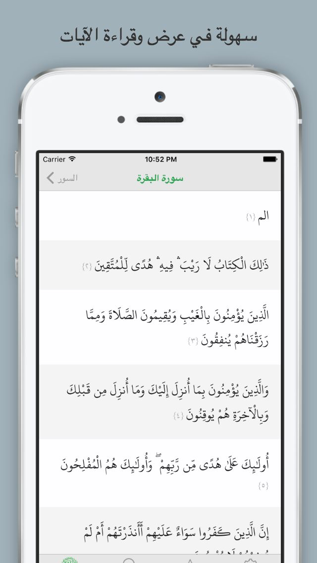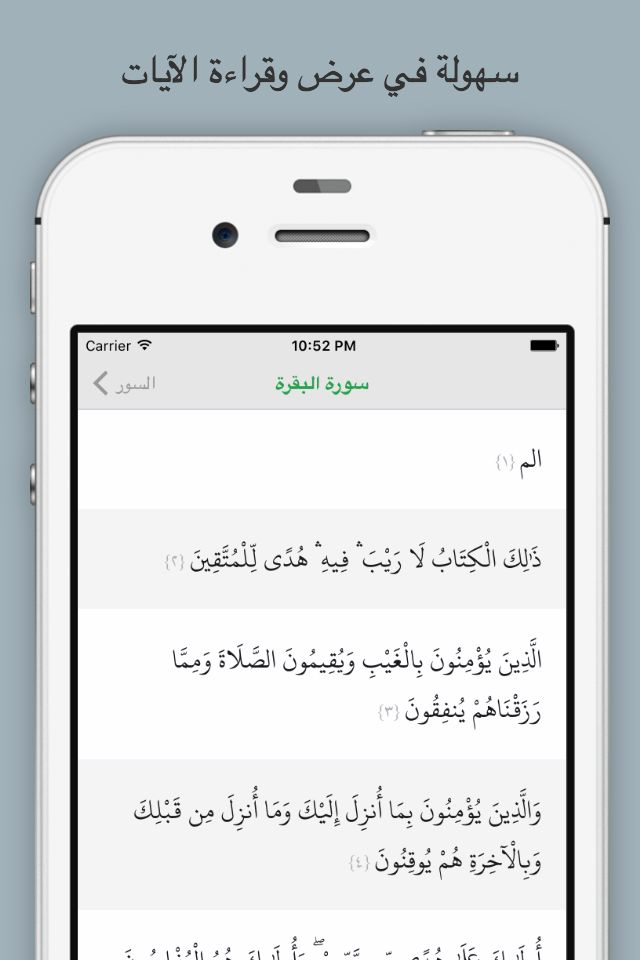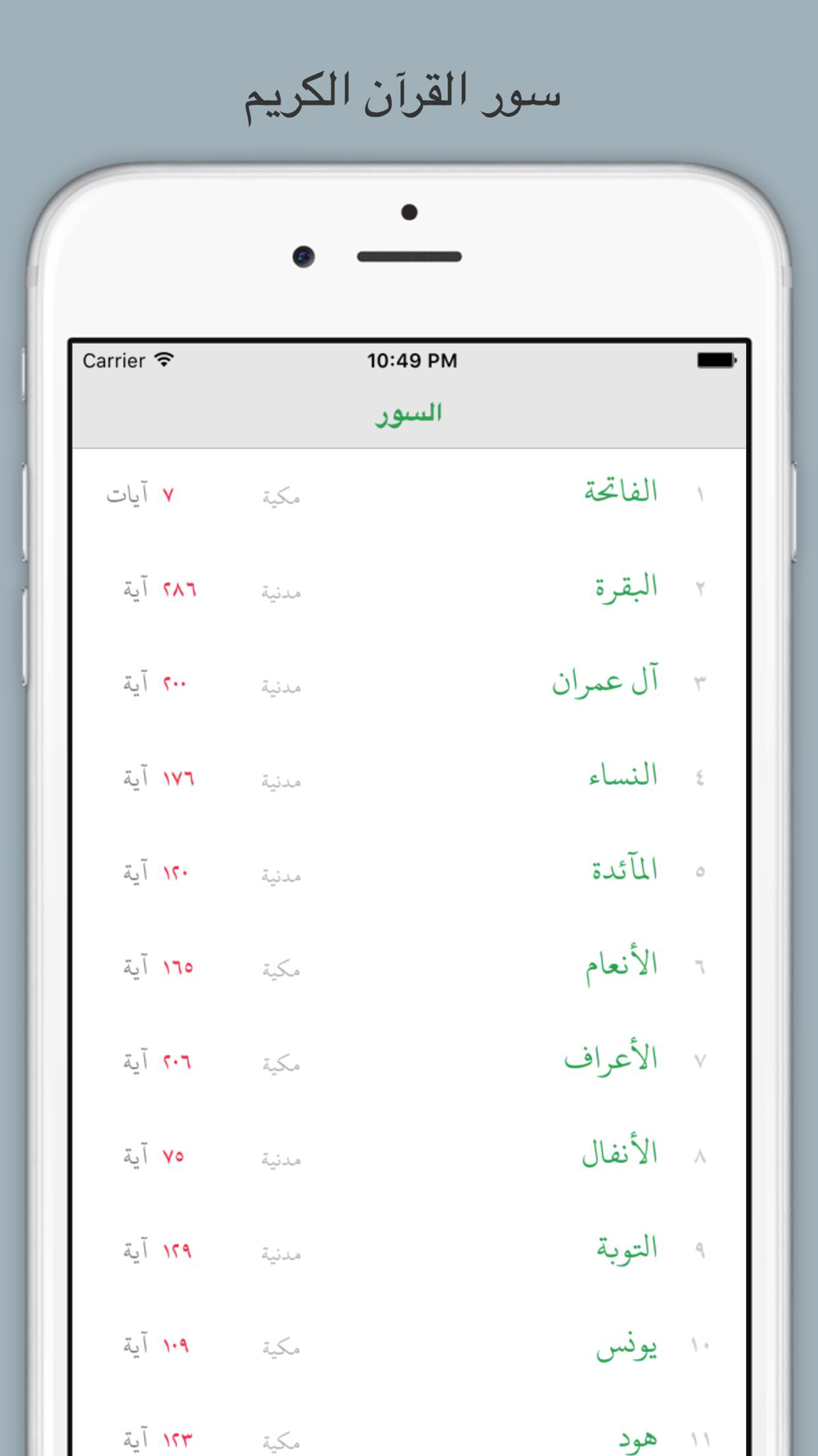 يحتوي التطبيق على كامل سور القرآن الكريم بالاضافة الى تفاسير الايات.