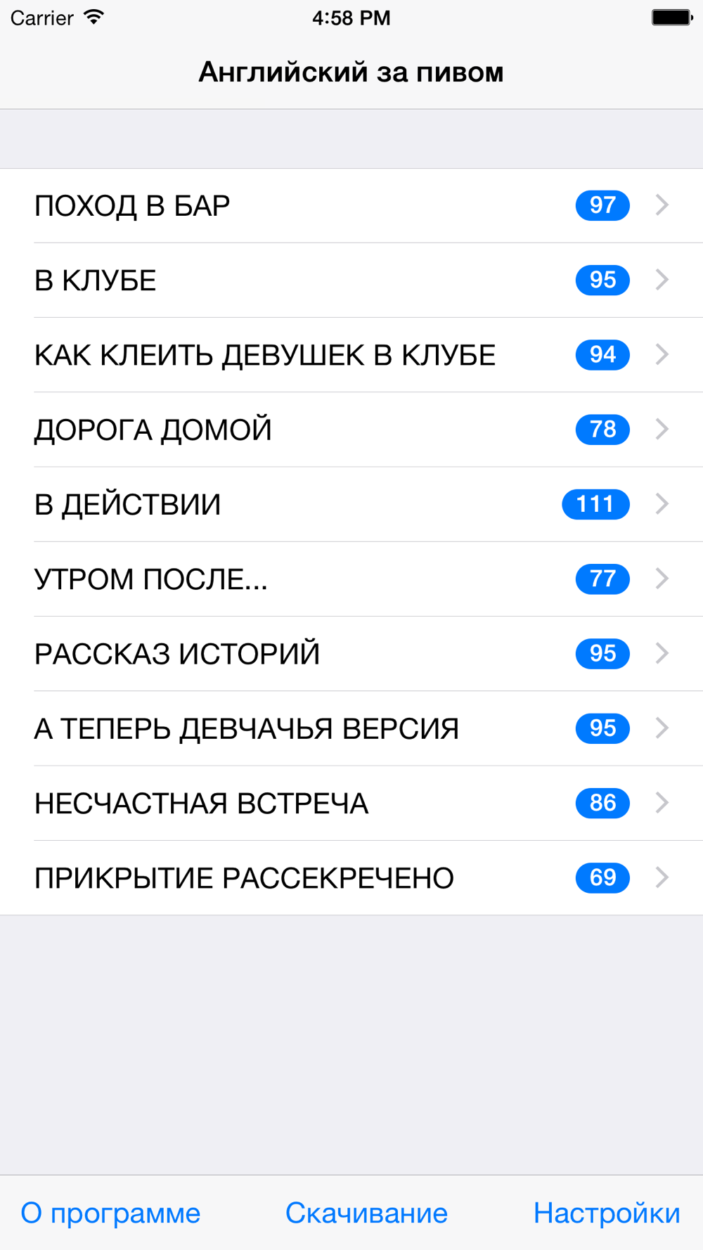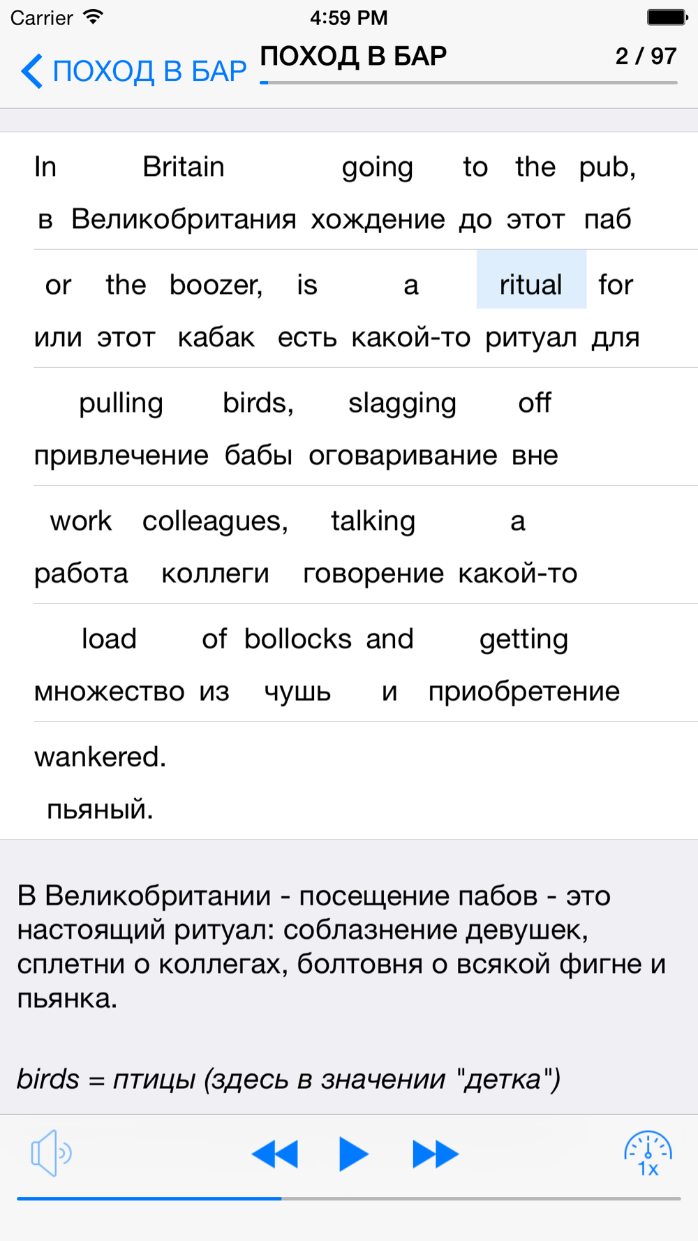 La aplicación El inglés de pub le brindará la oportunidad de familiarizarse con el vocabulario de los adolescentes británicos, de los paletos, los juerguistas y borrachos. Gracias a El inglés de pub siempre tendrán algo que decir incluso en las más íntimas situaciones y con su vocabulario triunfarán hasta ante los groseros ingleses más desvergonzados. Es que el inglés de pub puede ser increíblemente rico...