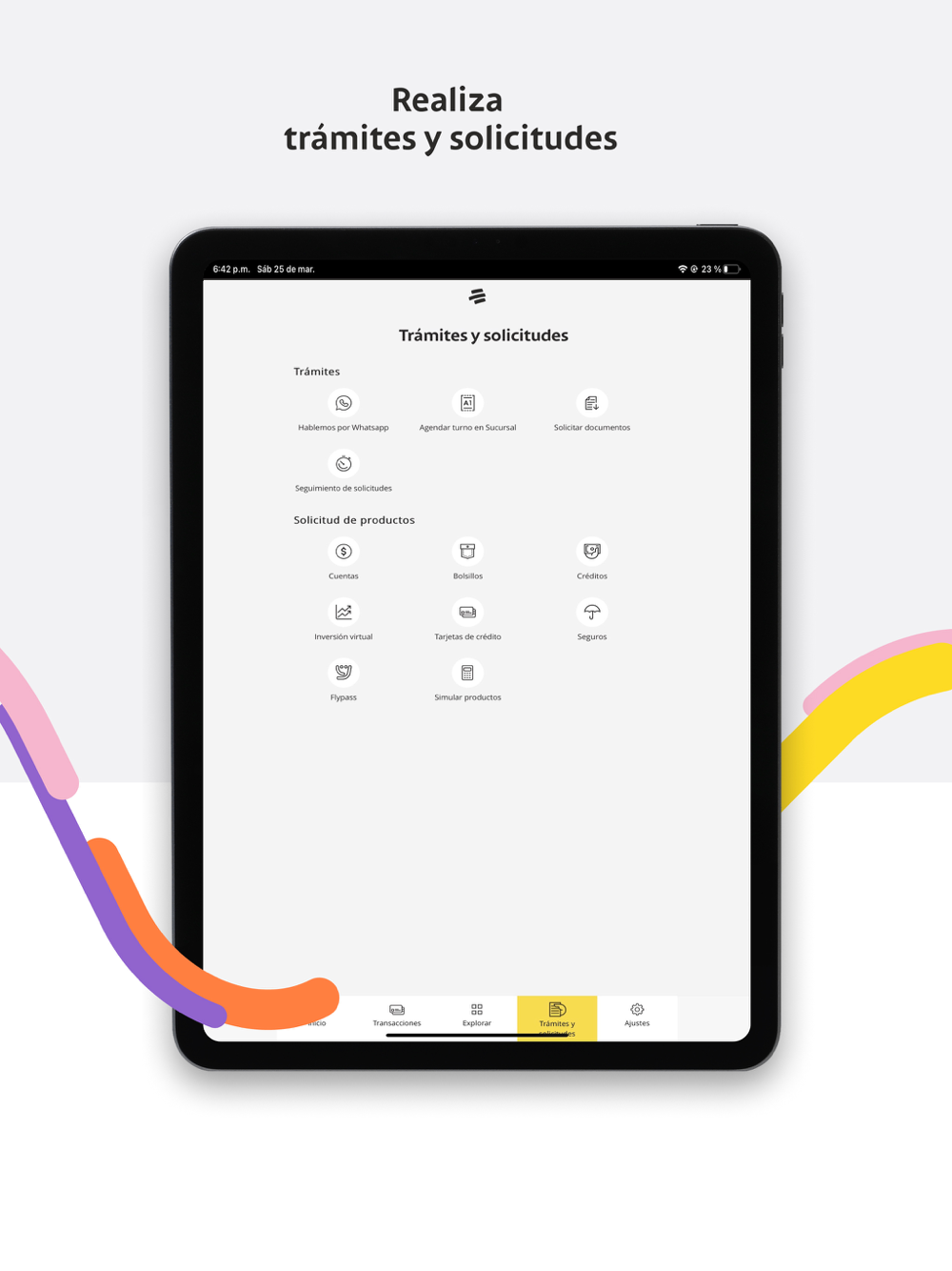 • Solicitar productos: Abre una inversión virtual, solicita una tarjeta, un seguro, una cuenta o el producto Bancolombia que desees desde tu App Bancolombia.
