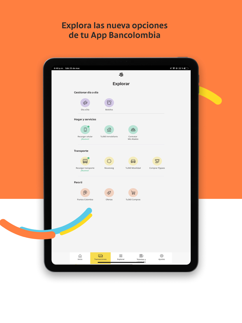• Para ti: Descubre ofertas exclusivas para ti, consulta tus Puntos Colombia y más.