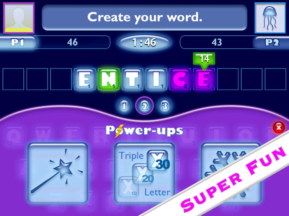 You start with a 2 letter word seed like “AN” and use it to build a word like “FANTASTIC.” Then you select 2 letters from your word, and those letters become the next word seed for your opponent.