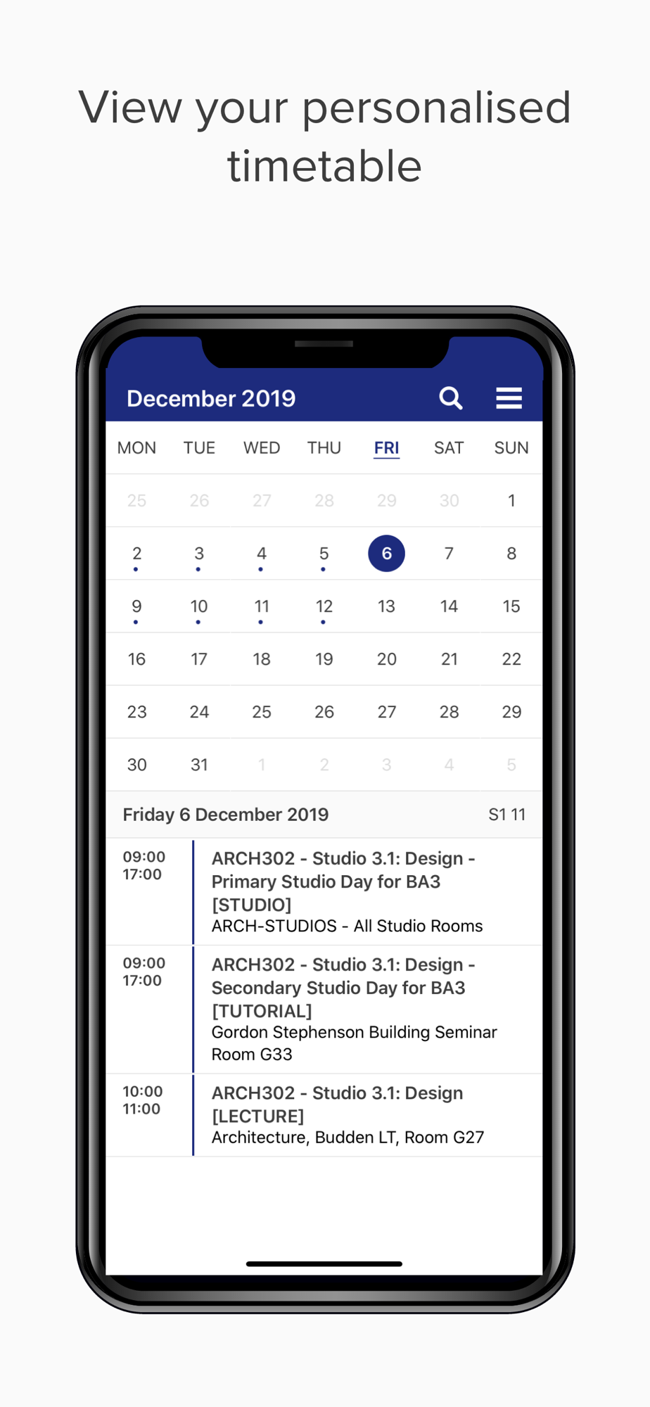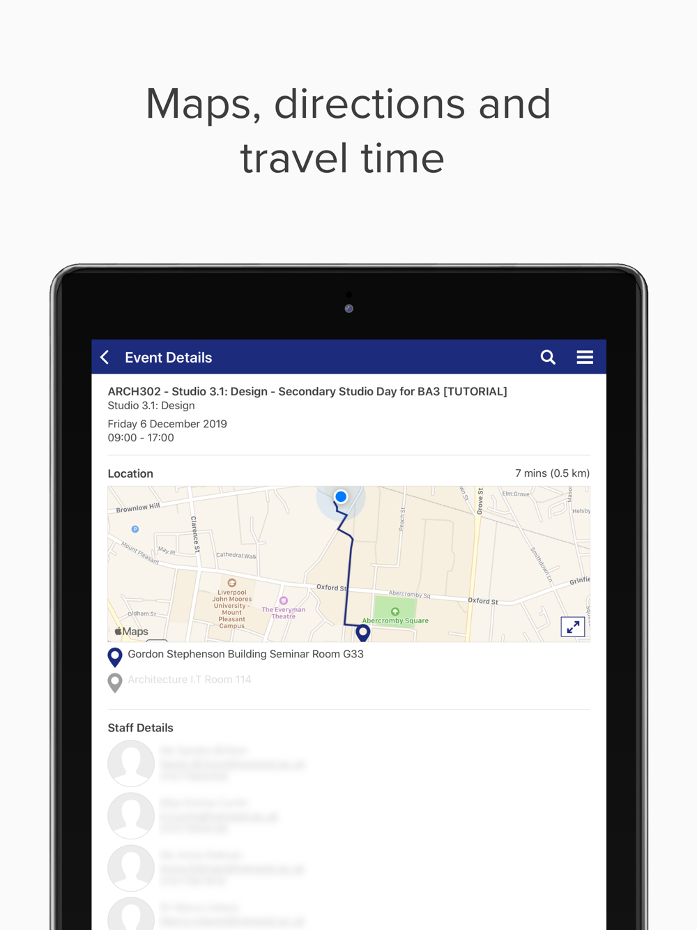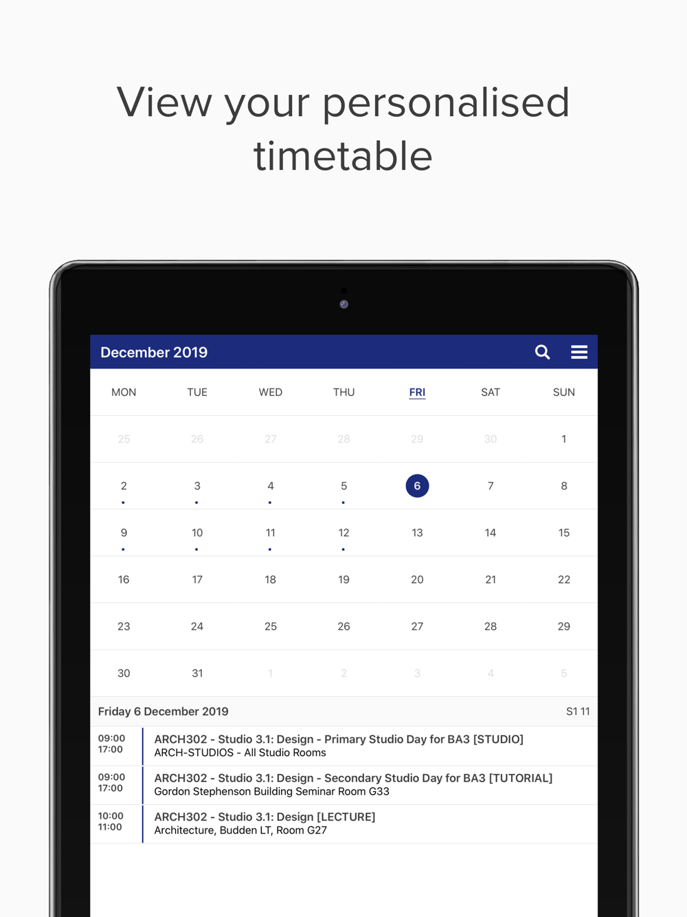 Timetables allows students and staff at the University of Liverpool to retrieve personalised timetables complete with campus maps.