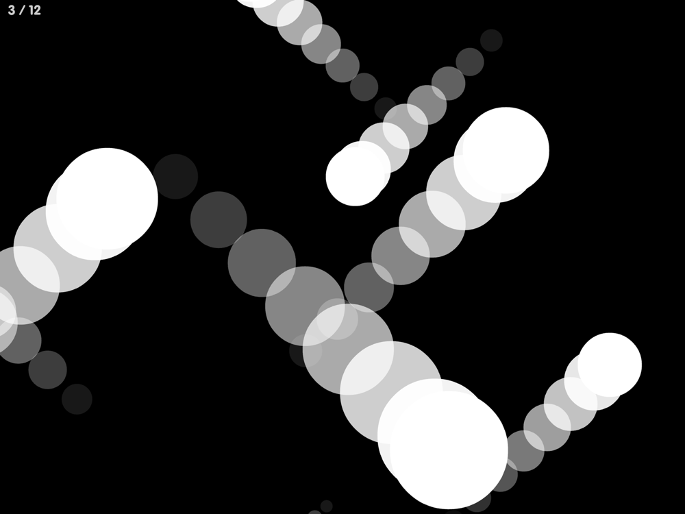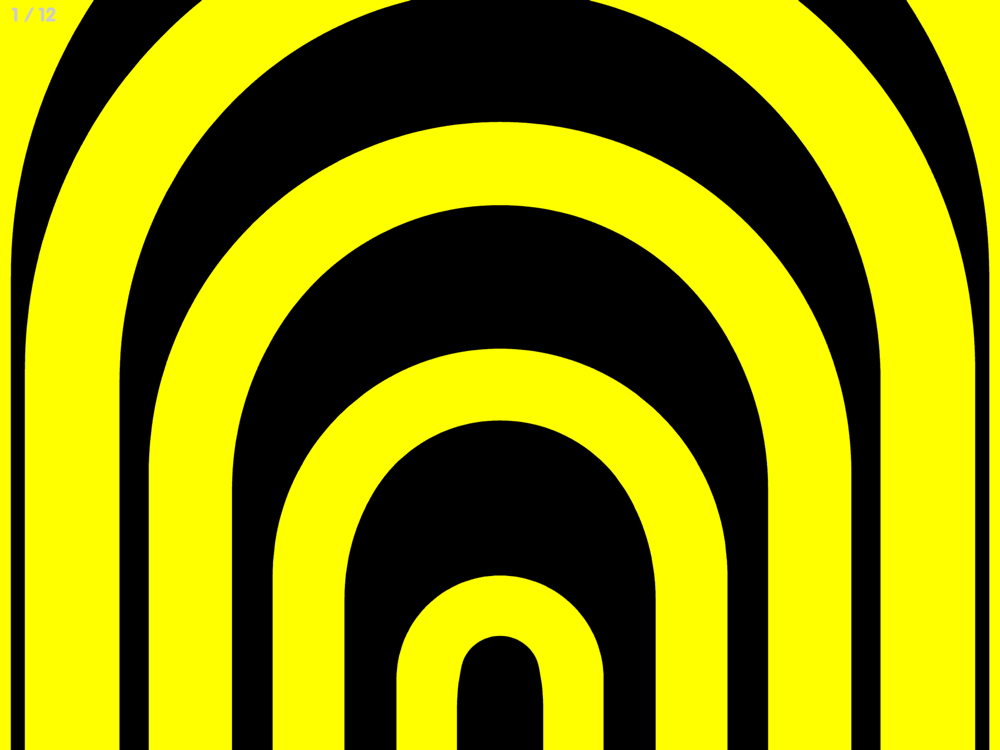 Strong, bold screen filling patterns designed to attract attention to the screen and including engaging tunnelling effects and attention grabbing music and sound effects.
