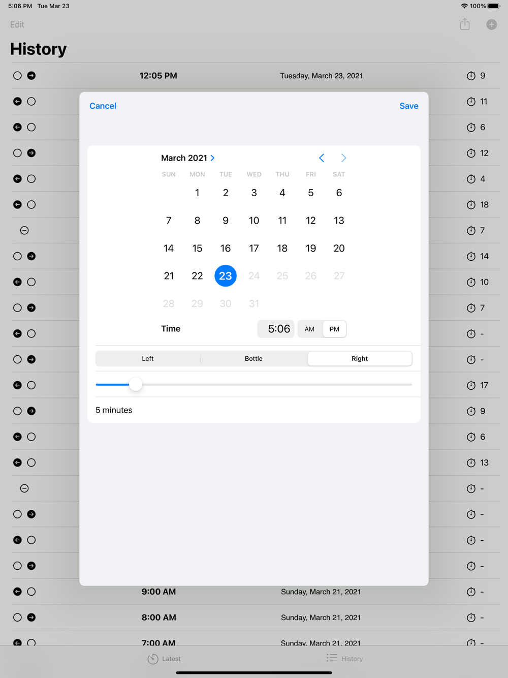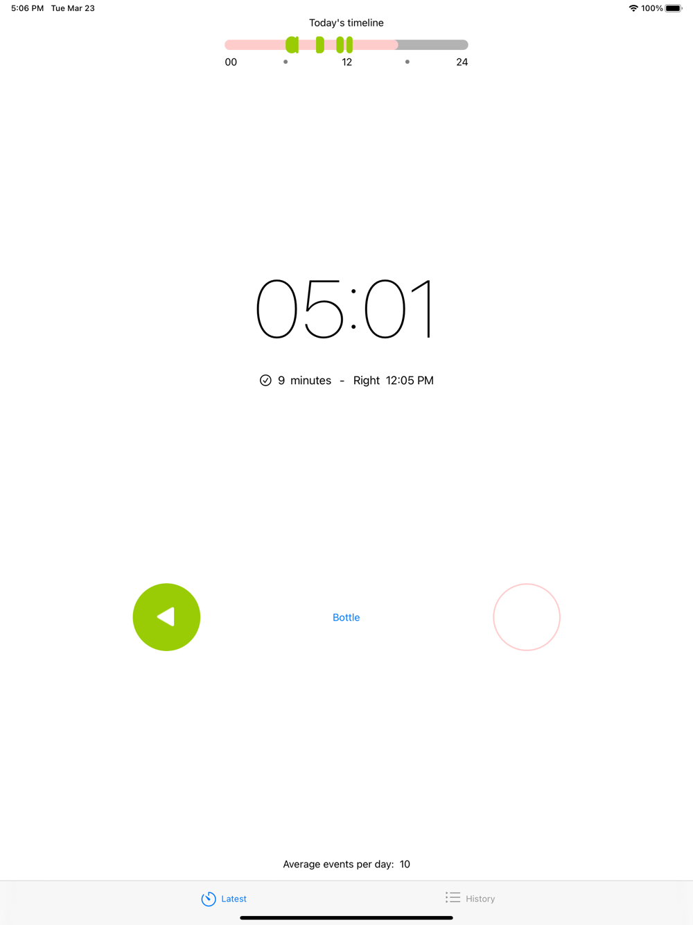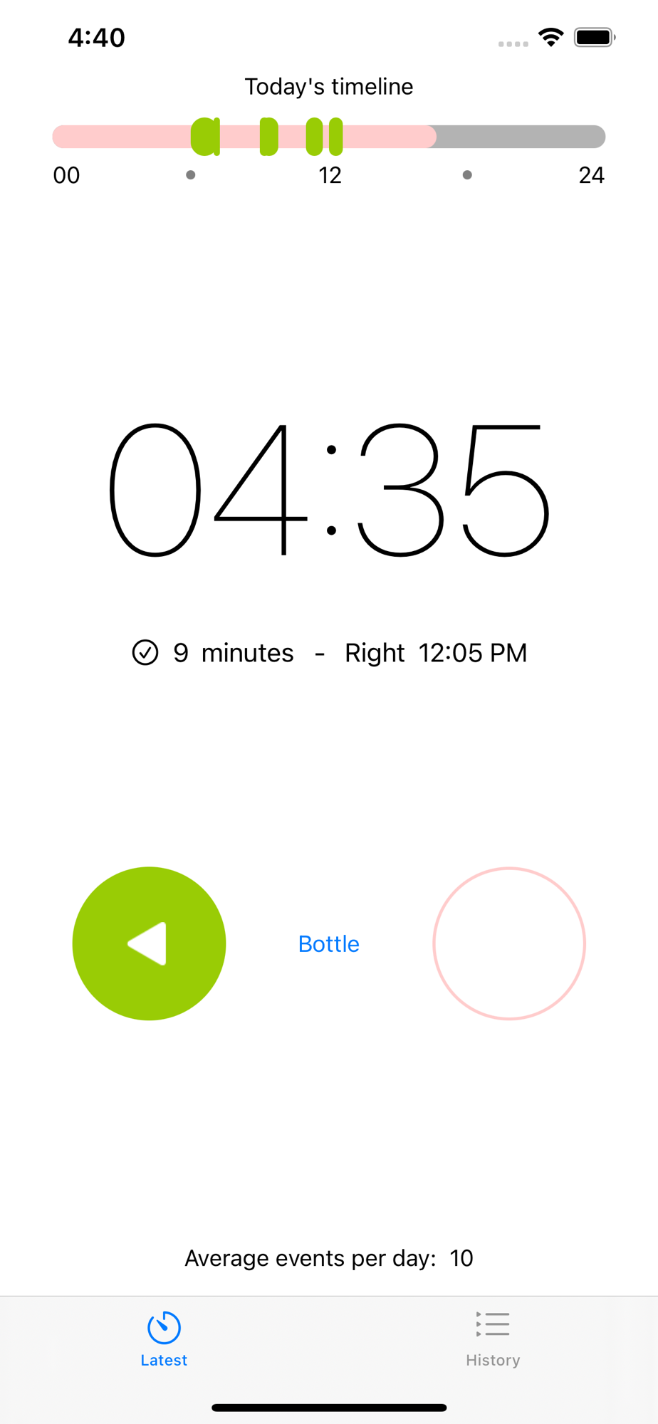 Easily keep track of when you last bottle-fed or breast-fed your baby and on which breast. Shows a history of feedings per day and an average count per day. Add and delete records from history. Share history to apps and file.