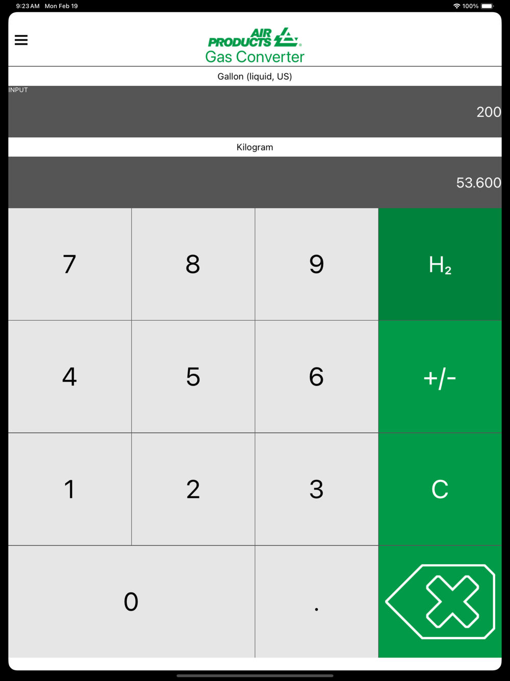Air Products Gas Converter converts weight and volume measures for industrial gases like nitrogen, oxygen, argon, hydrogen, helium, and carbon dioxide, as well as liquefied natural gas (LNG/methane).