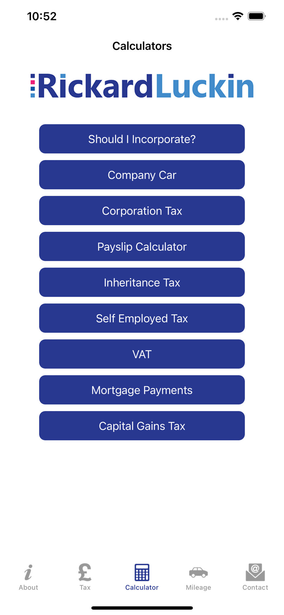 This app is brought to you and your business compliments of Rickard Luckin LLP, Chartered Accountants & Chartered Tax Advisors; and is developed by Tax Apps Limited.