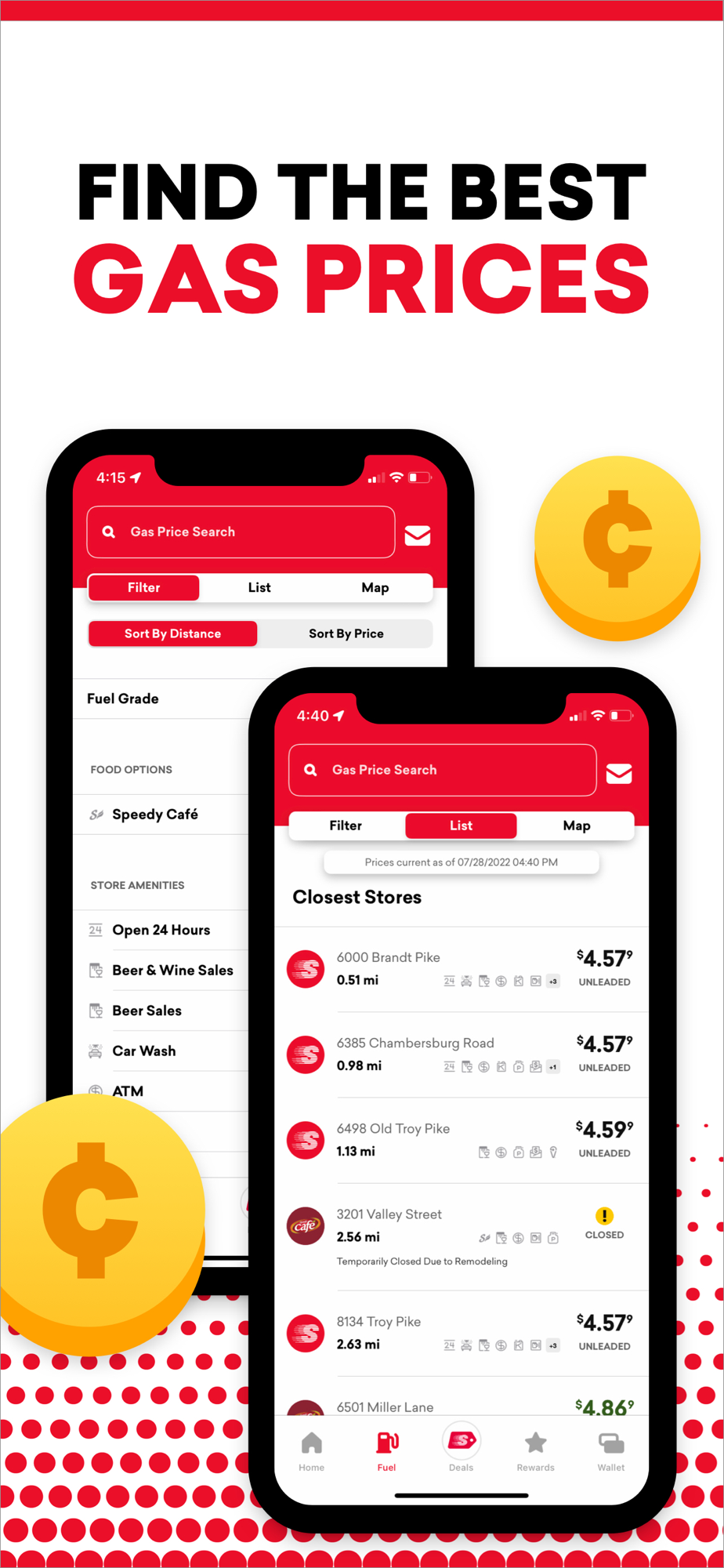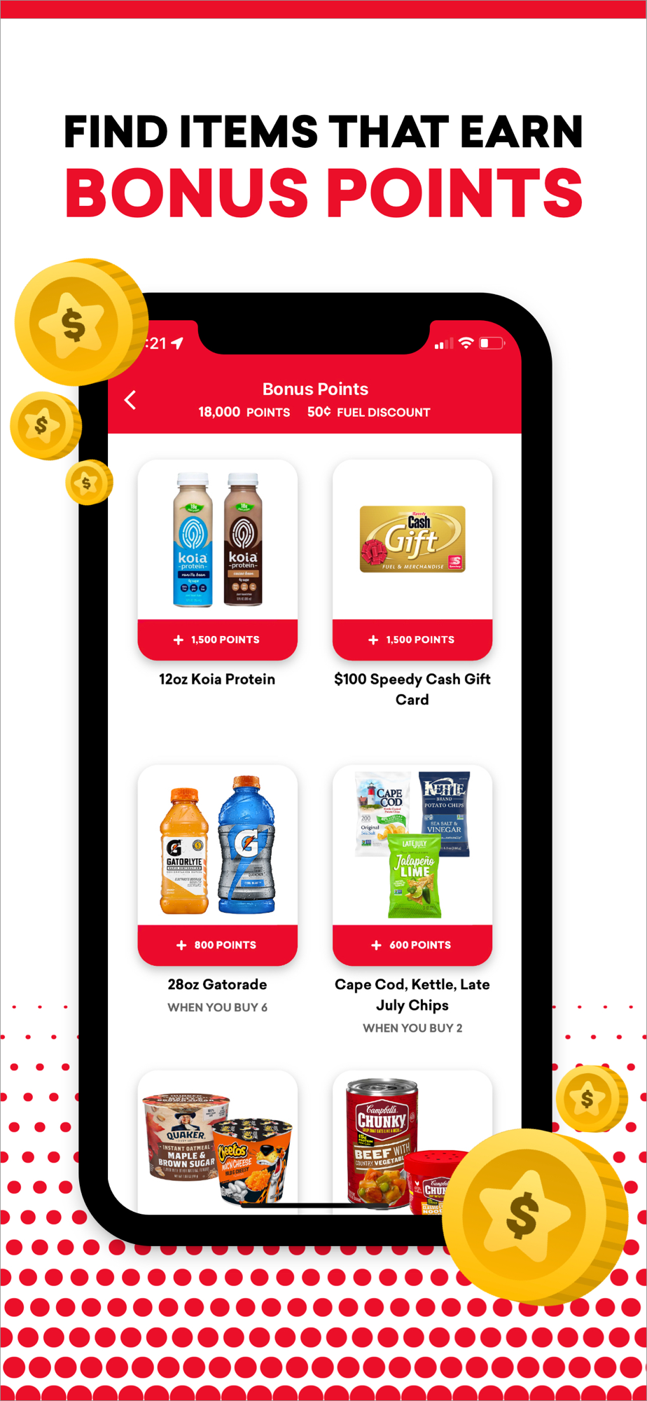 Earn Points. Get rewards. The official app of Speedway and Speedy Rewards lets you start earning on the fuel and merchandise you already buy. Members can redeem those points for coupons towards their favorite items or get discounts on gas with our fuel rewards.