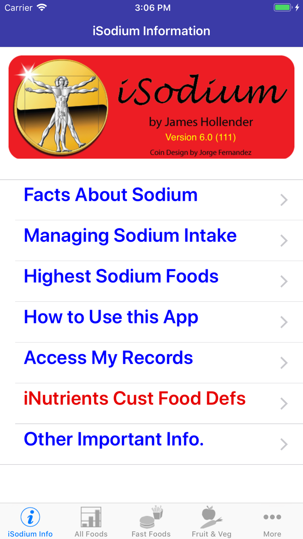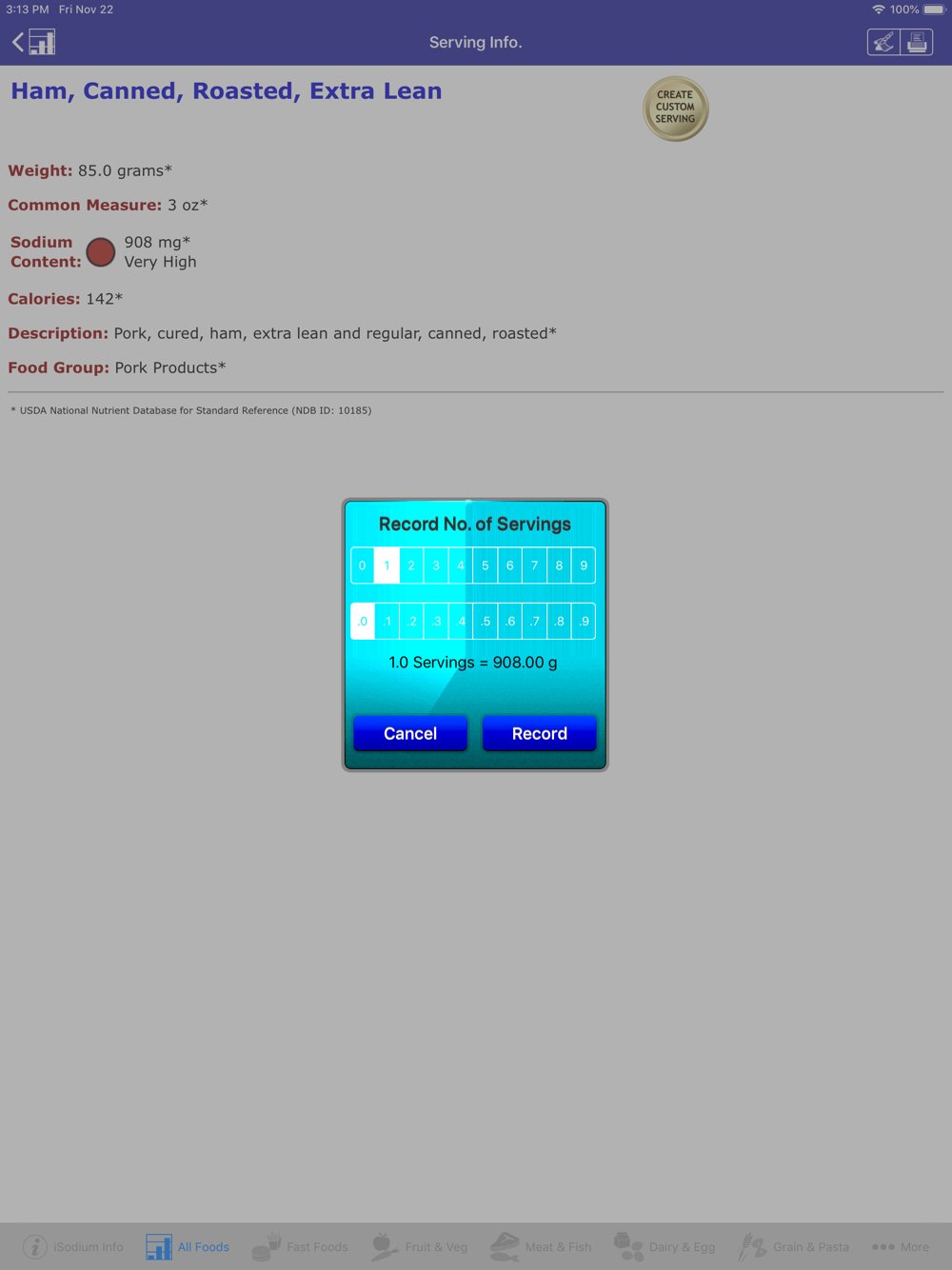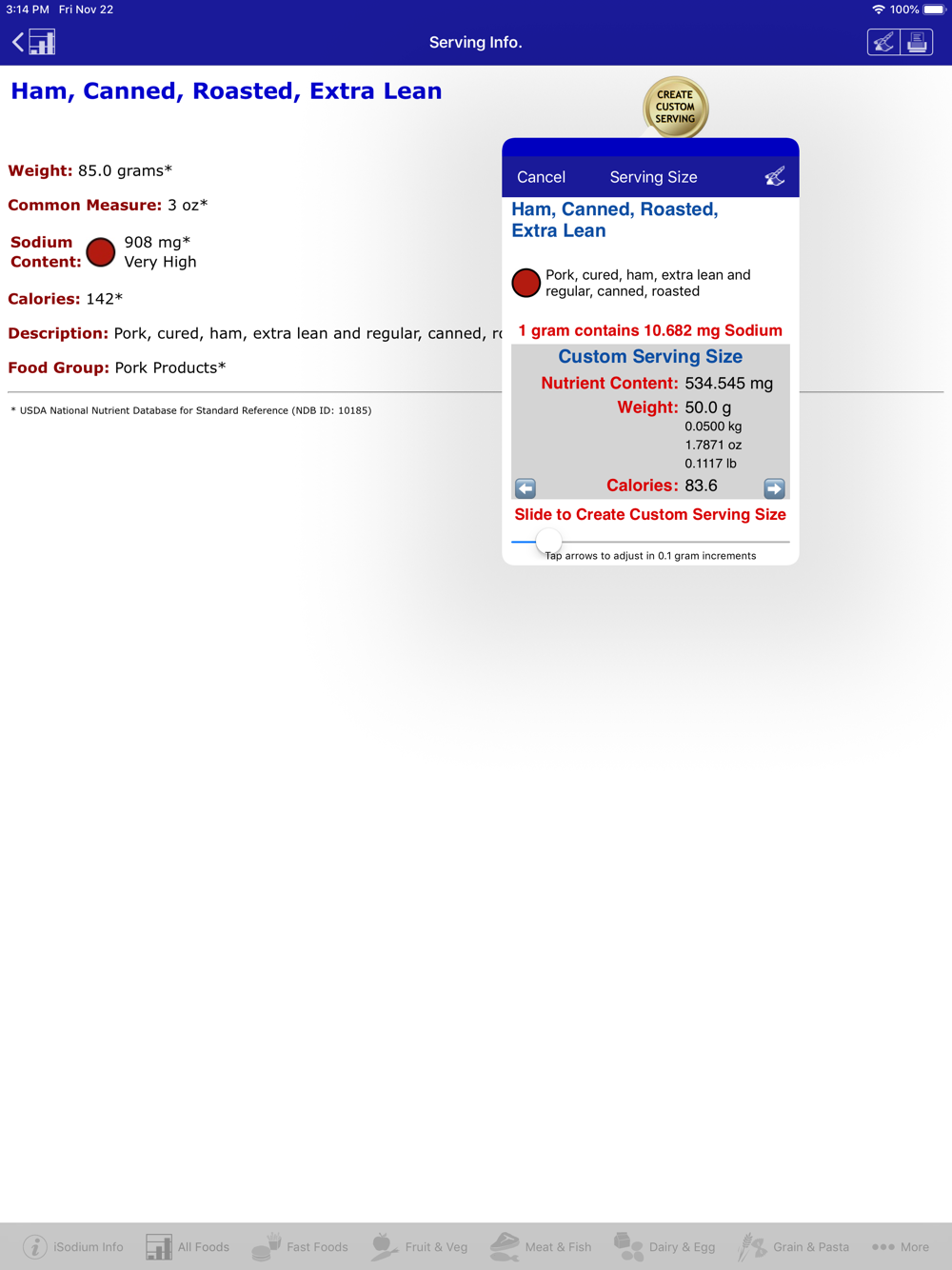 iSodium is one of 10 iNutrient apps based on the USDA National Nutrient Database. The others include: