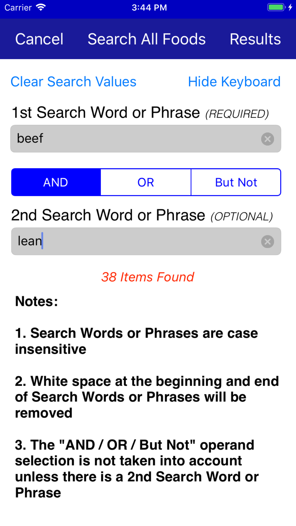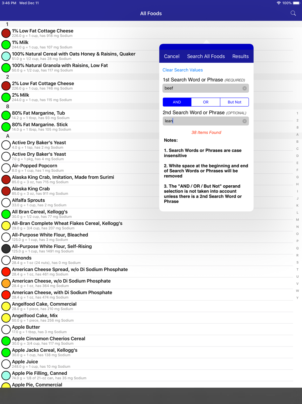 The All Foods list allows you to search by any word or partial word from all the Food Titles.