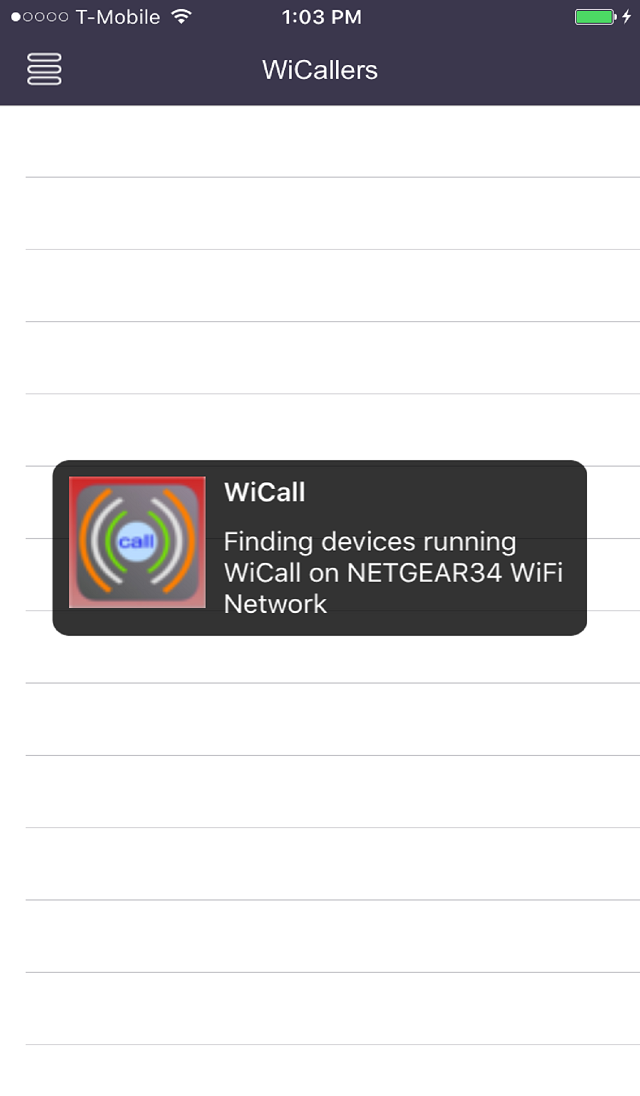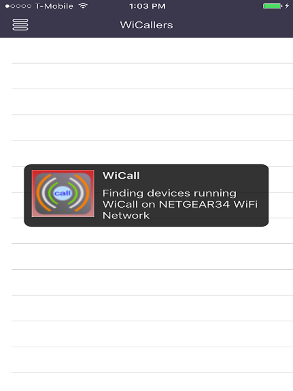 Once connected WiCall will automatically detect nearby devices running WiCall and list them on the screen.