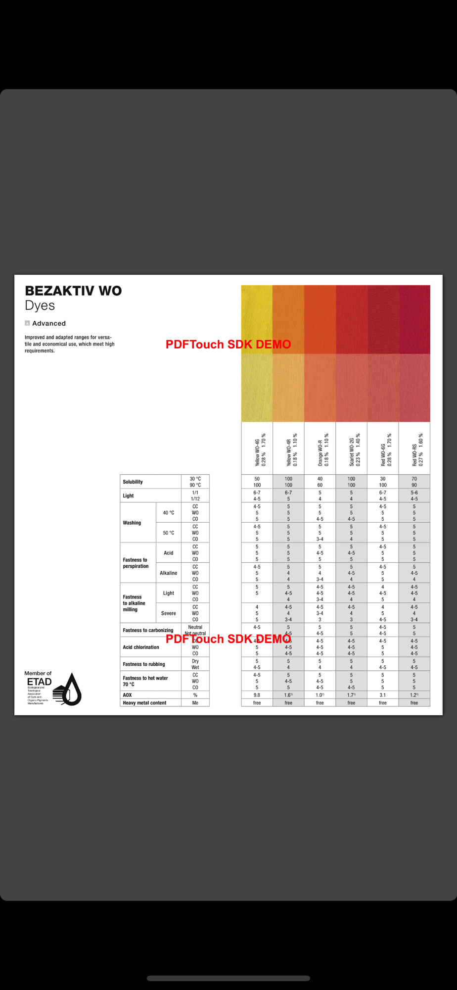 Our dyestuff app is free of charge and provides comprehensive information on our range of dyestuffs for the dyeing and printing sectors.