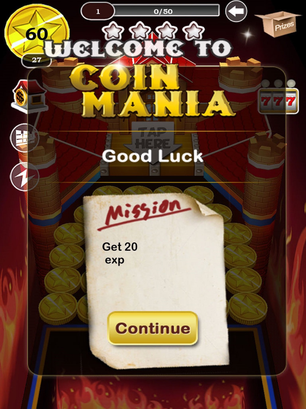Try to push off as many as shiny coins and exciting prizes as you can, make sure to push them towards you because if they fall off the left or right side they are gone and don’t count.