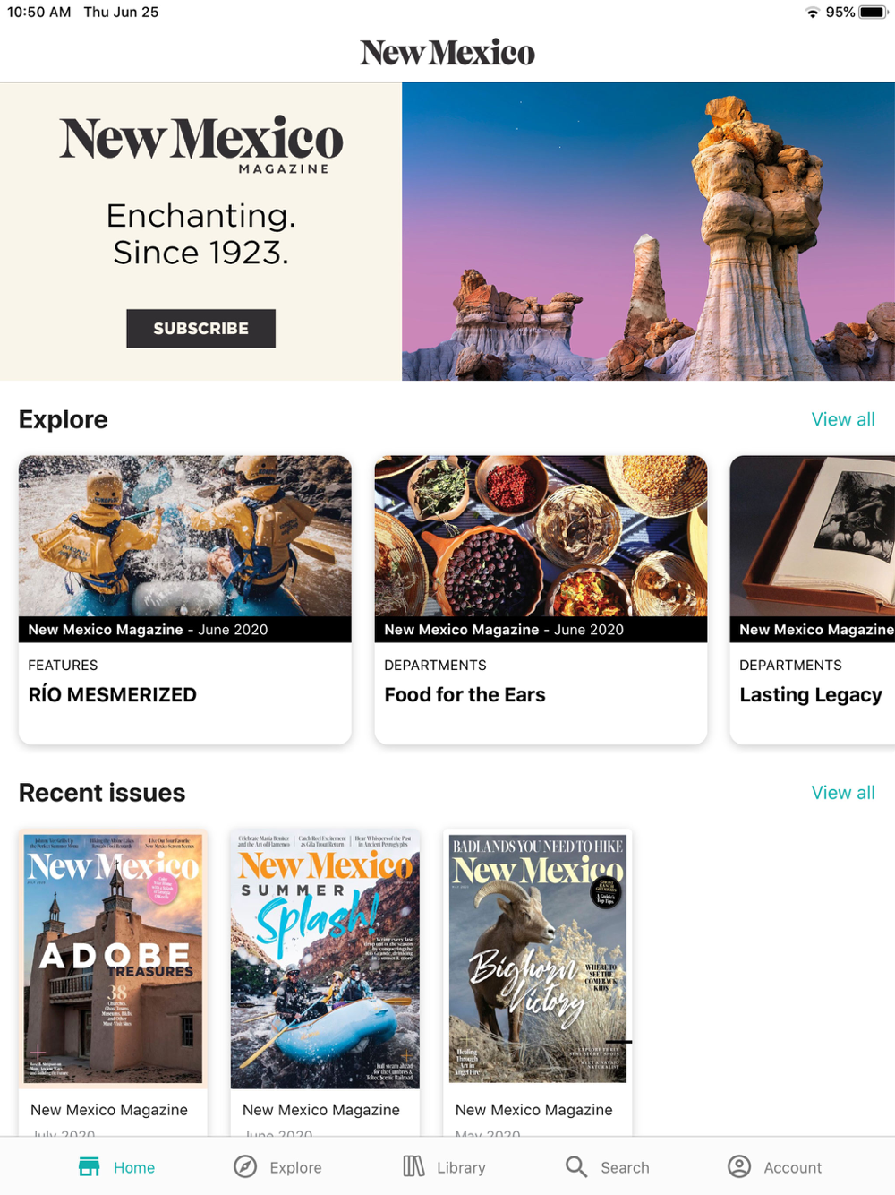 NEW MEXICO MAGAZINE is about the power of place — in particular this place: more than 120,000 square miles of mountains, desert, grasslands, and forest inhabited by a culturally rich mix of individuals. Founded in 1923, NEW MEXICO MAGAZINE is an enterprise of the New Mexico Tourism Department.