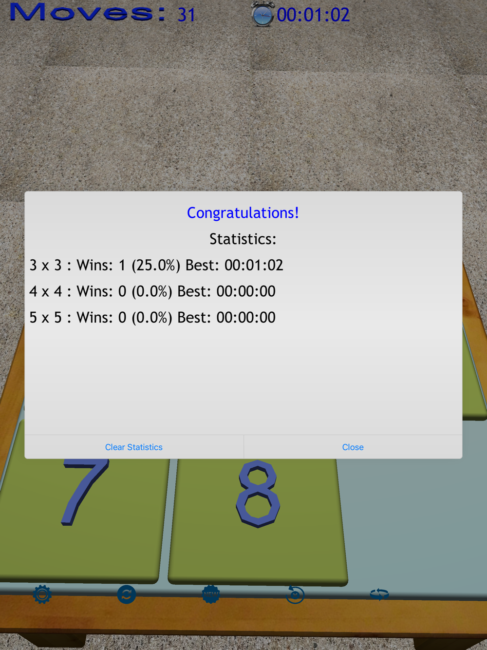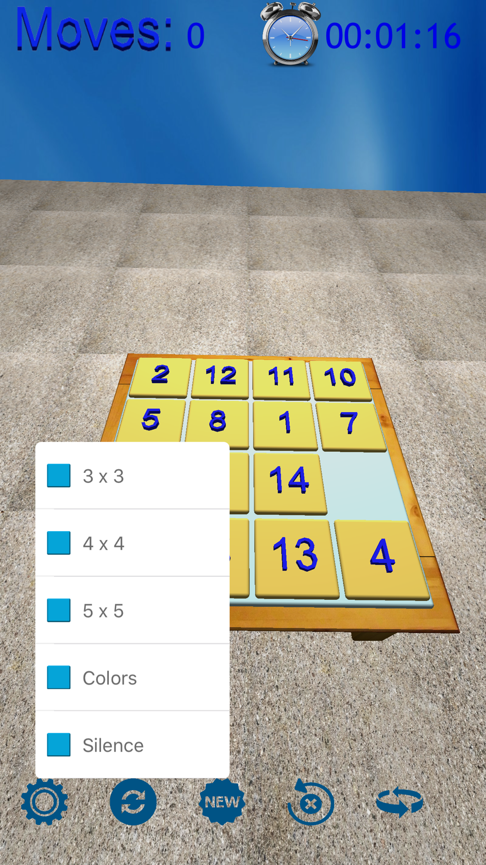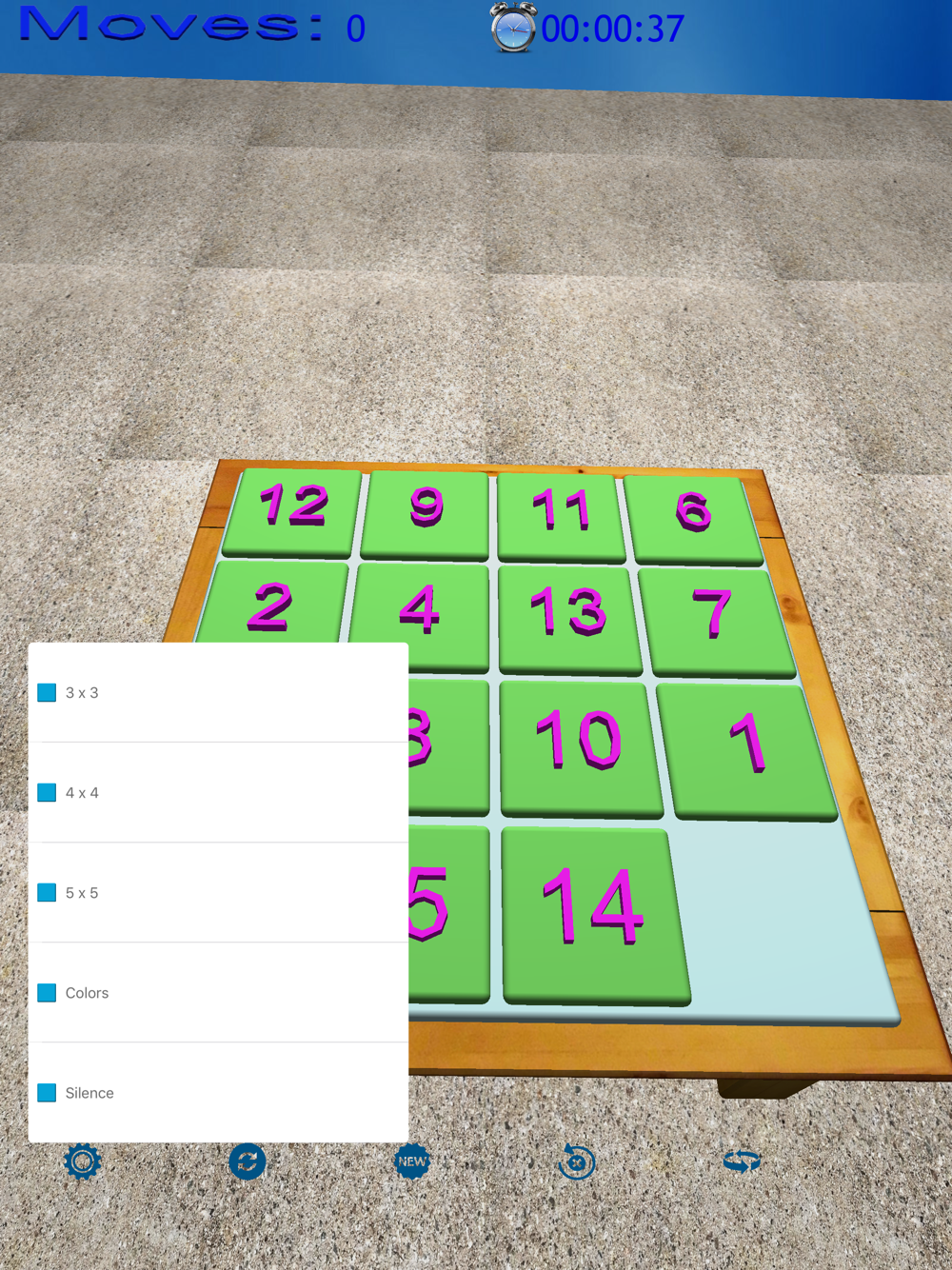 "Slide-Numbers" uses 3D models in a 3D scene to play the sliding block puzzle game.