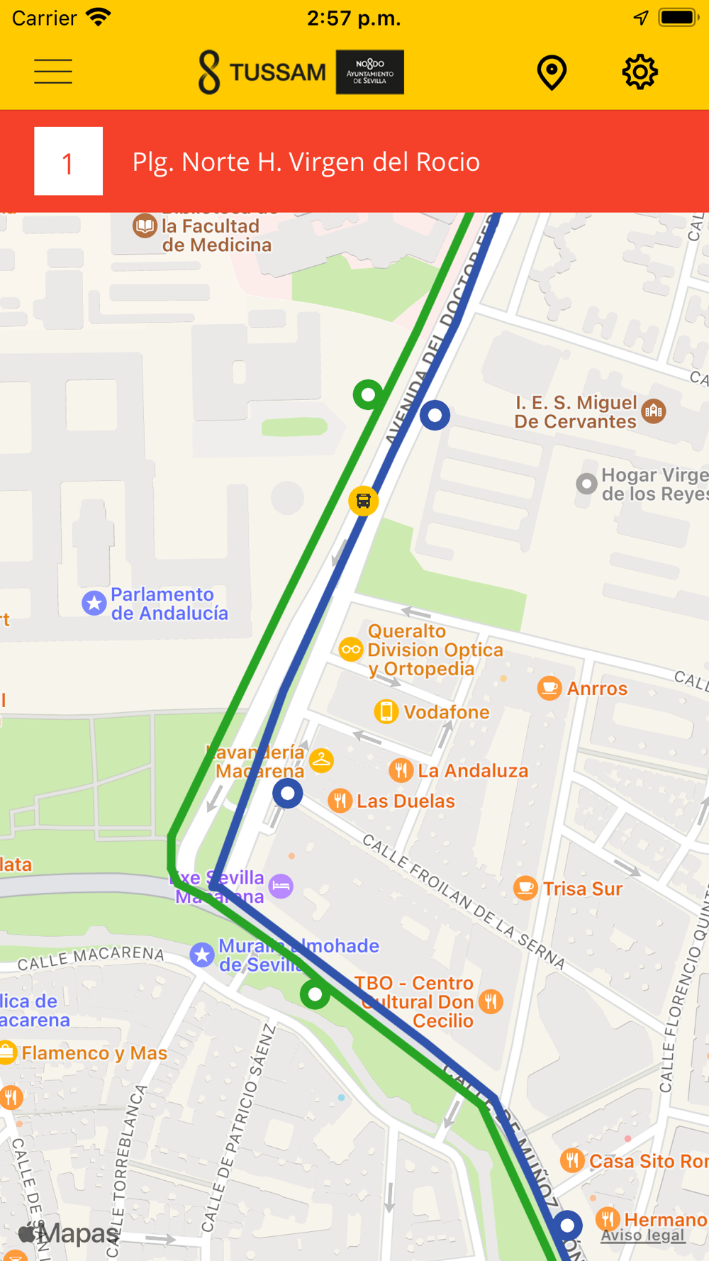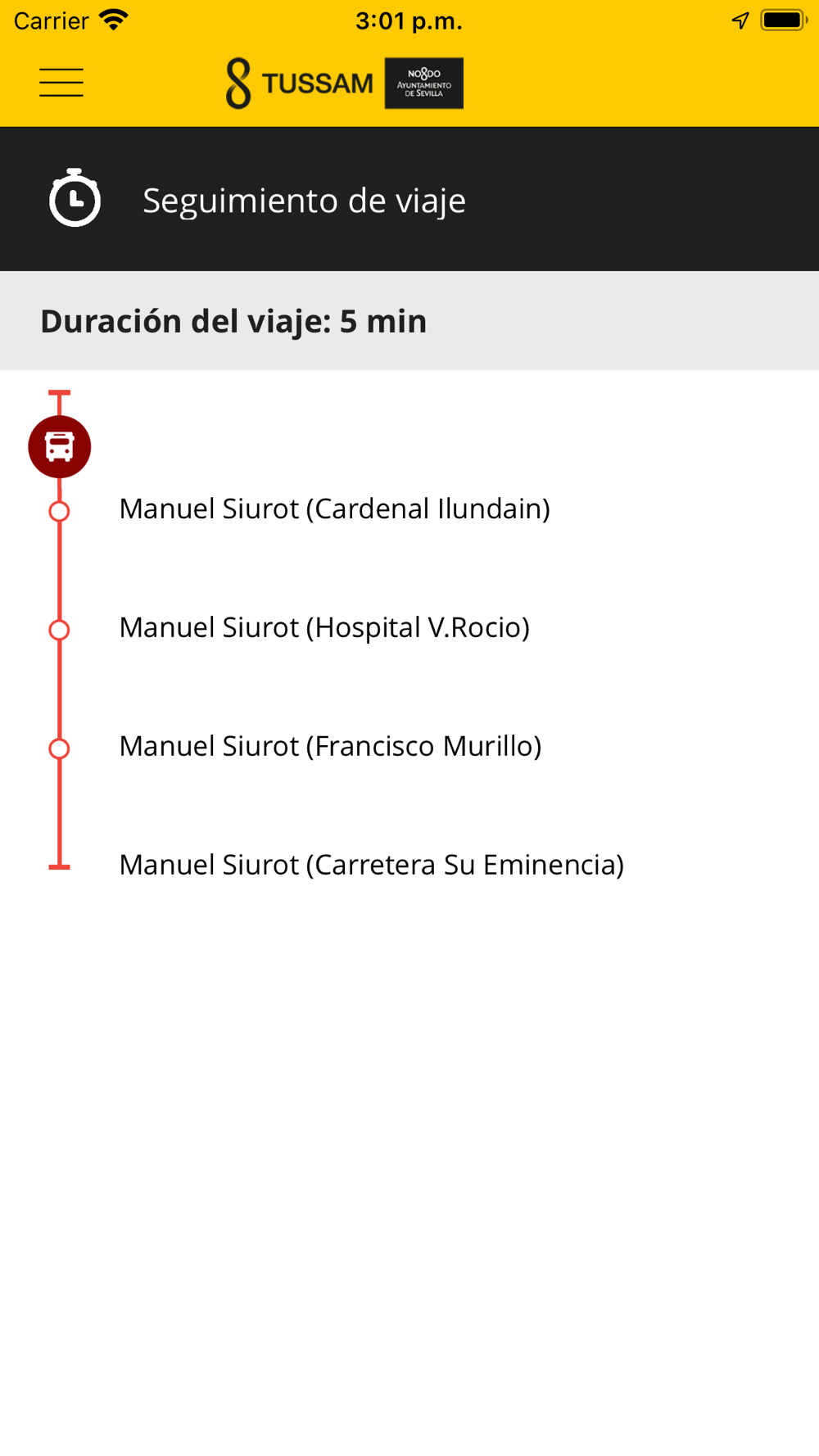 Ofrece información de las líneas de autobús y tranvía de TUSSAM, detallando en función de la fecha y hora sus recorridos y paradas, de forma esquemática o sobre un mapa, y dando la estimación de tiempos reales de espera.