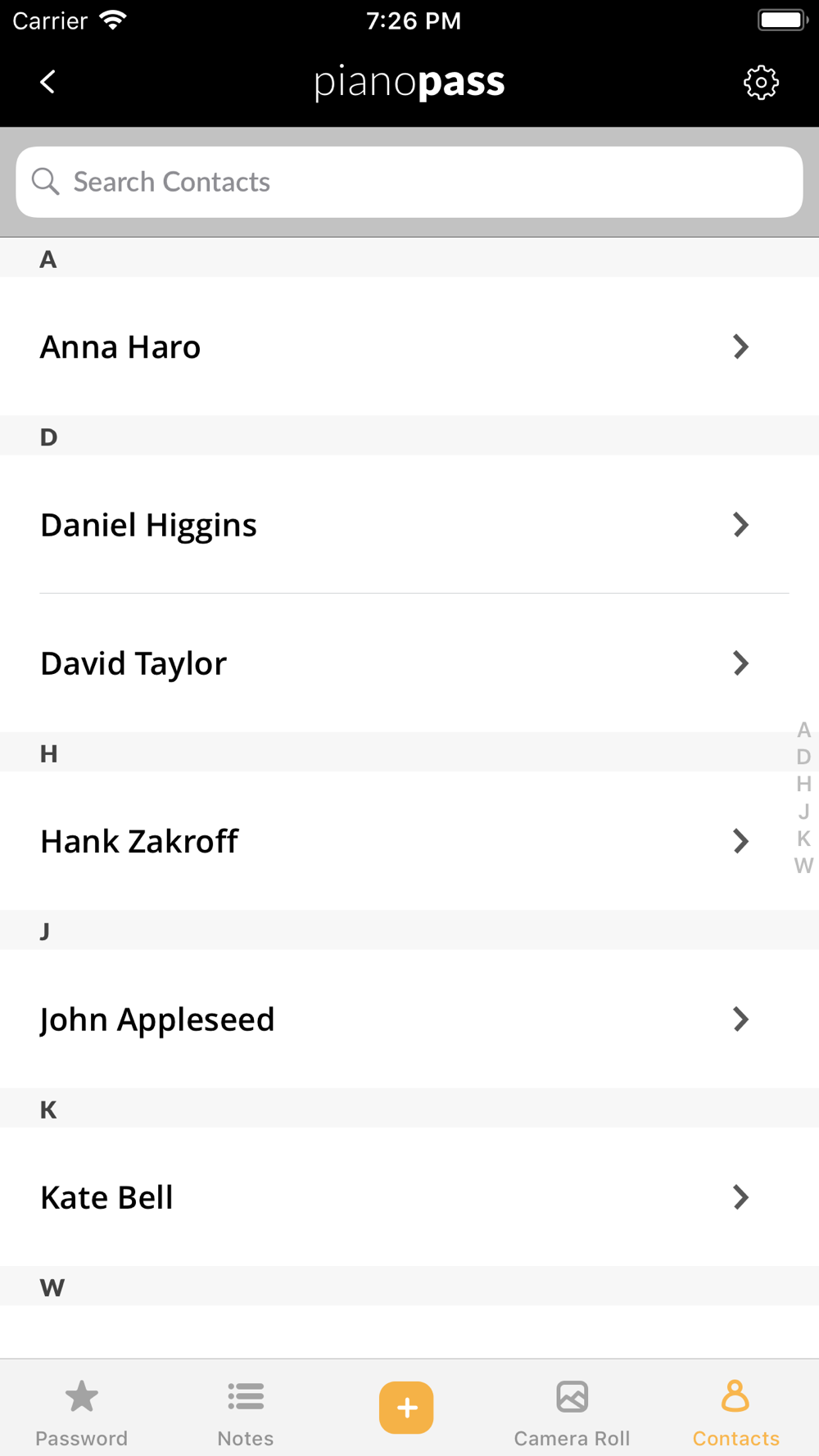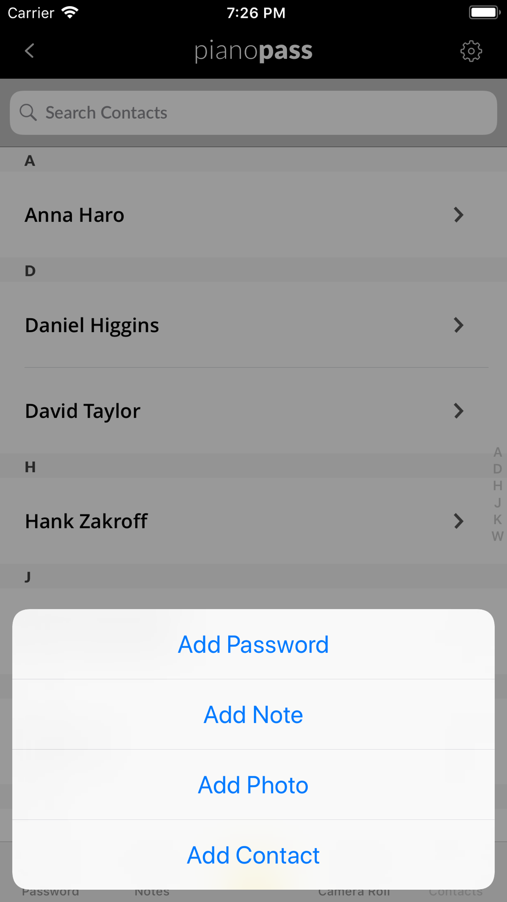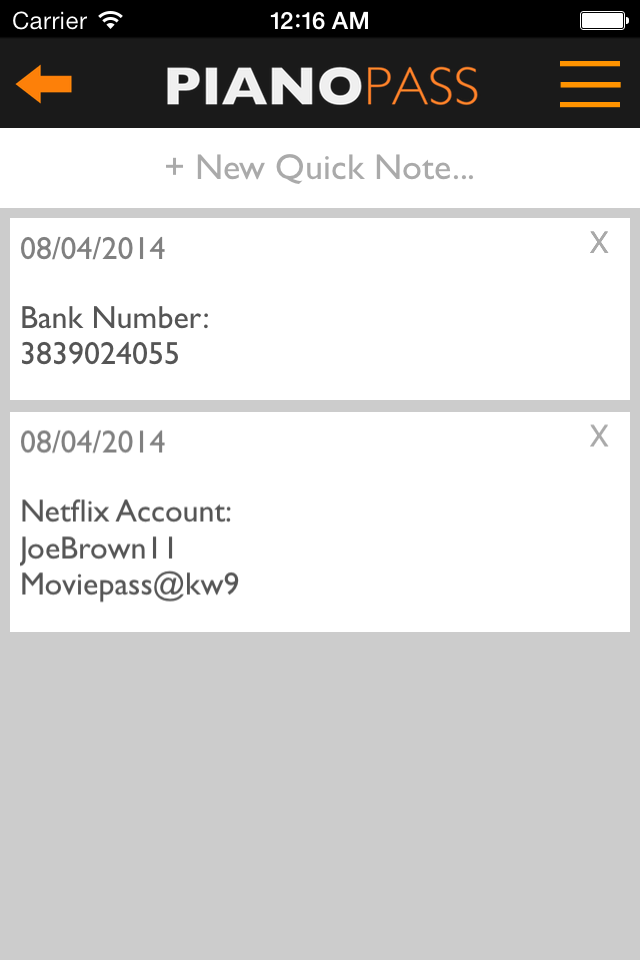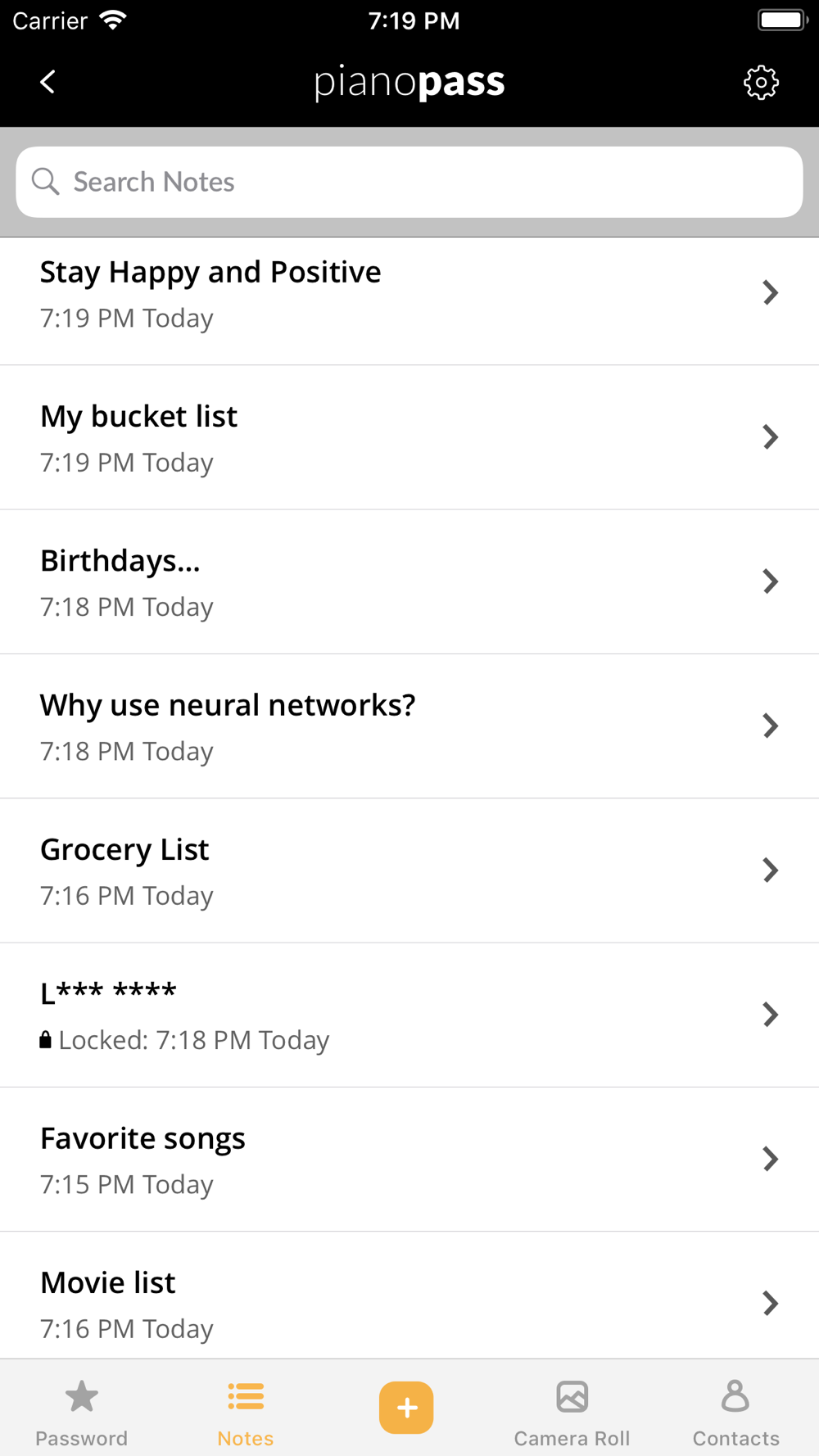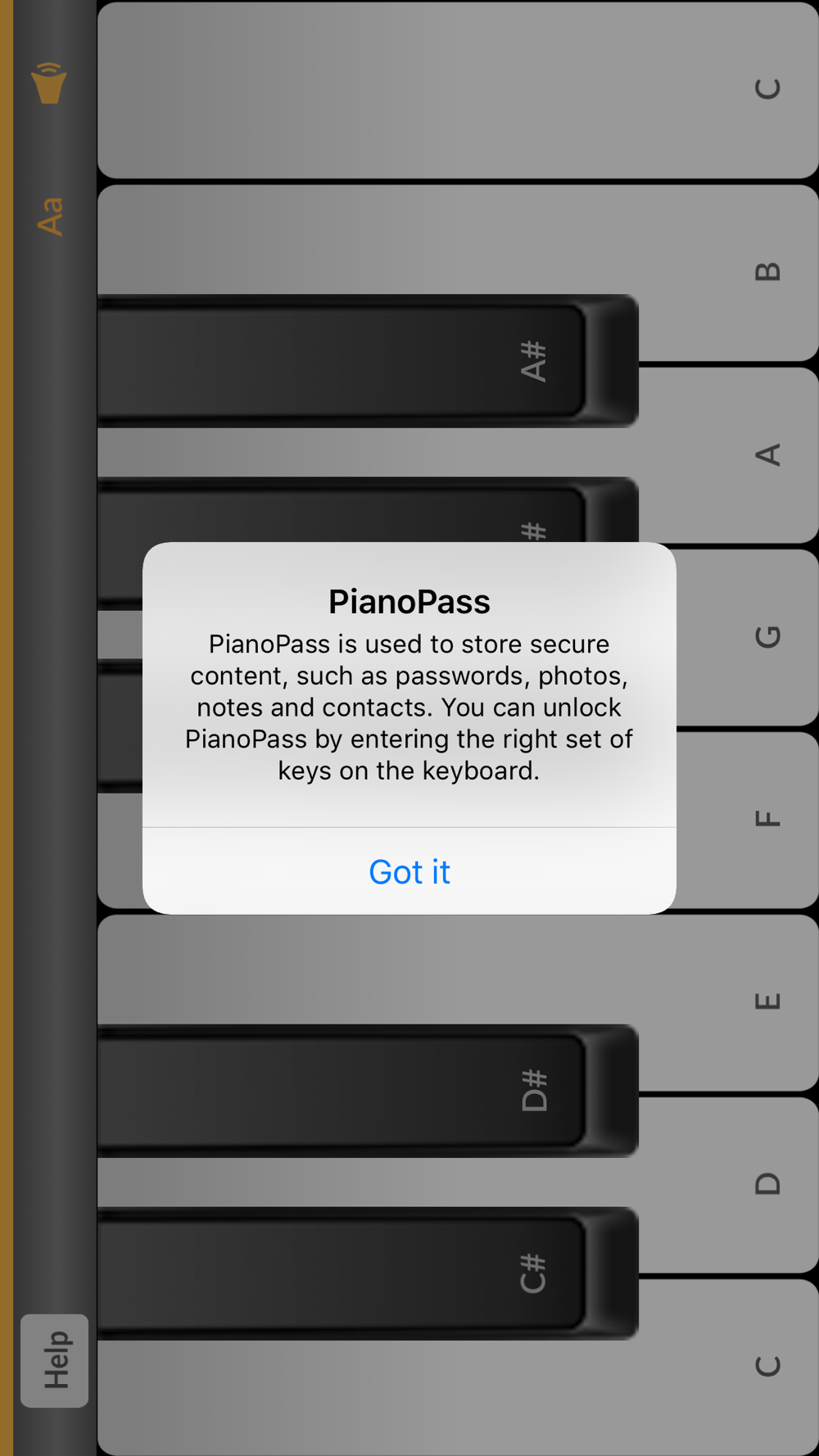 PianoPass allows you to safely and securely store your sensitive passwords, notes, camera roll, and contacts. The information can be accessed only if you play the right combination of keys on the Piano that you set.