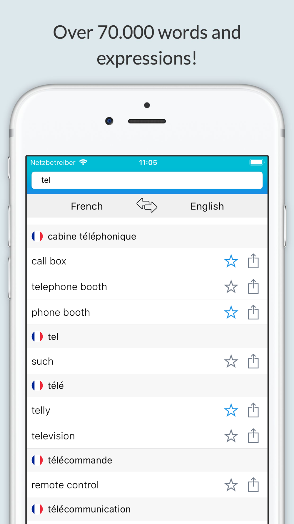 Offline English French Dictionary. Over 60.000 words and expressions! With voice!