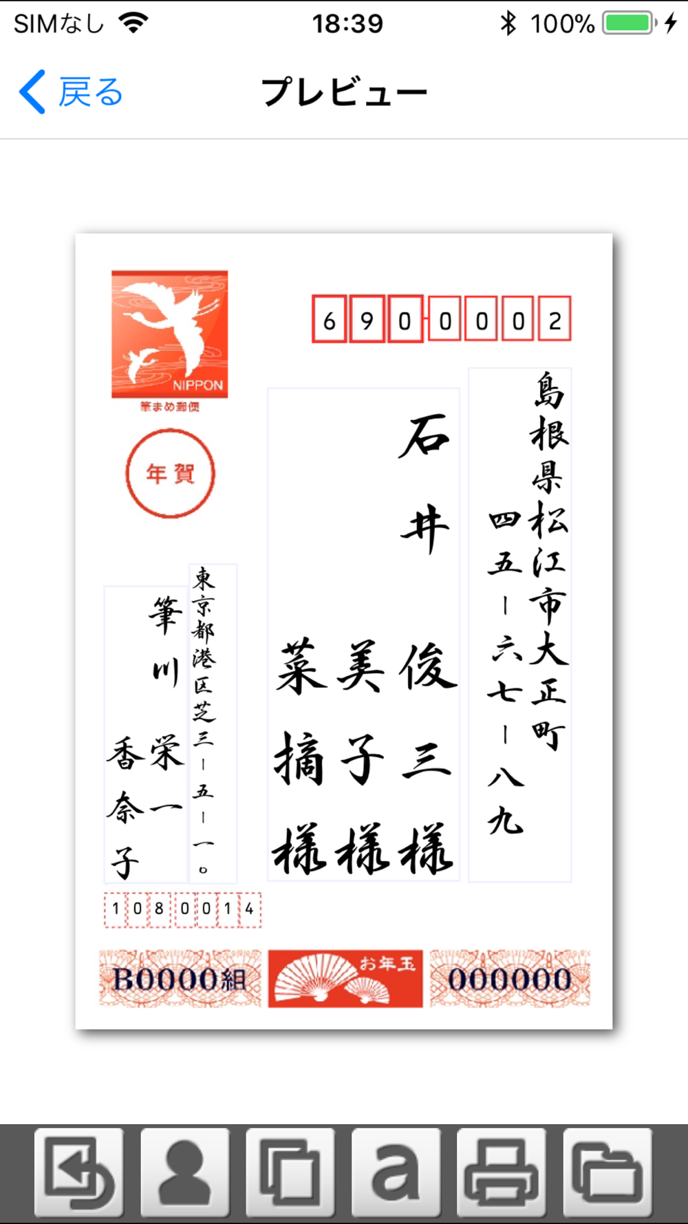 ・連名の指定、差出人情報の設定、フォントの変更、各項目のレイアウトの調整や郵便番号の微調整ができます。