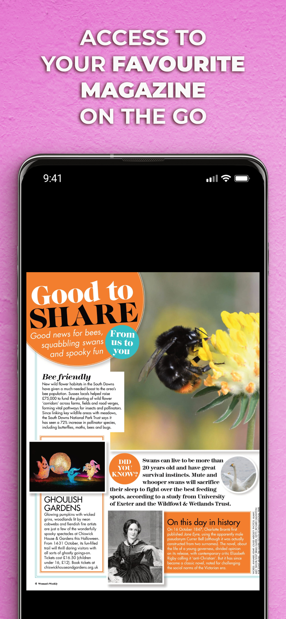 Delicious recipes developed and tested in the magazine's own kitchen, the latest health news, entertaining short stories, brilliantly edited fashion features and beauty advice, gorgeous craft and home ideas and absorbing real life stories. No other weekly magazine offers the range of topics and issues we cover and no other weekly magazine can boast a readership that is as loyal, engaged and responsive as ours.